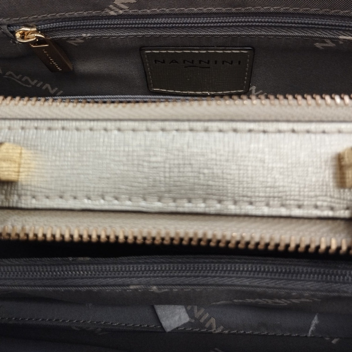 La Borsa a mano firmata Nannini Firenze, realizzata in vera pelle effetto saffiano è caratterizzata da logo frontale in metalleria color oro e da tracolla regolabile e removibile, inoltre dispone di doppio scompartimento foderato internamente in tessuto logato e presenta una tasca chiusa a zip.
