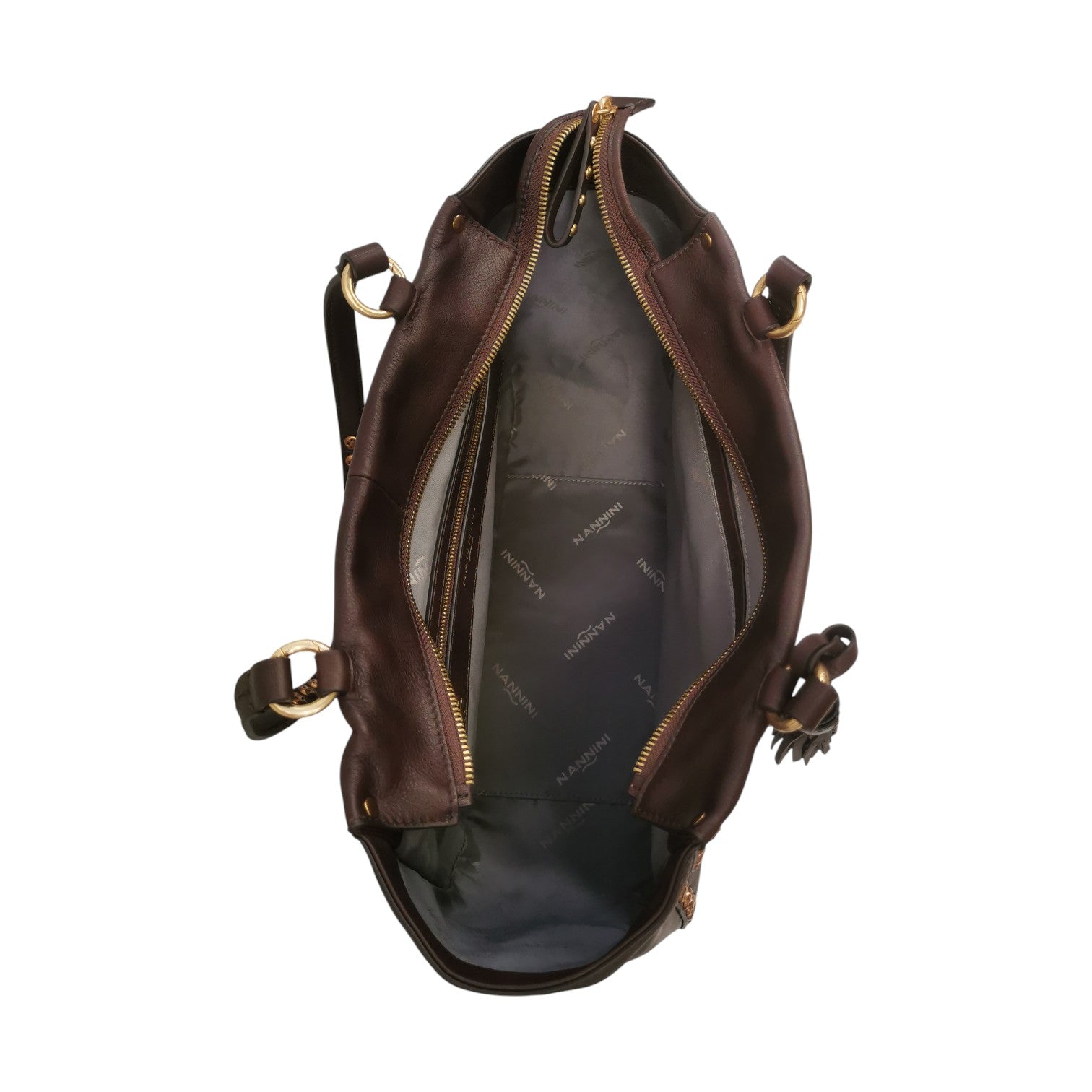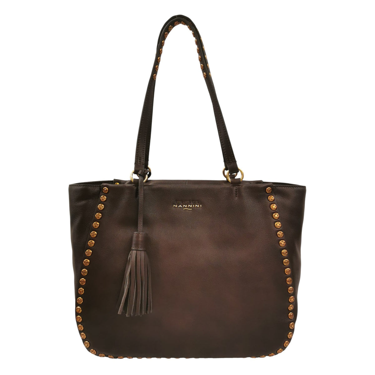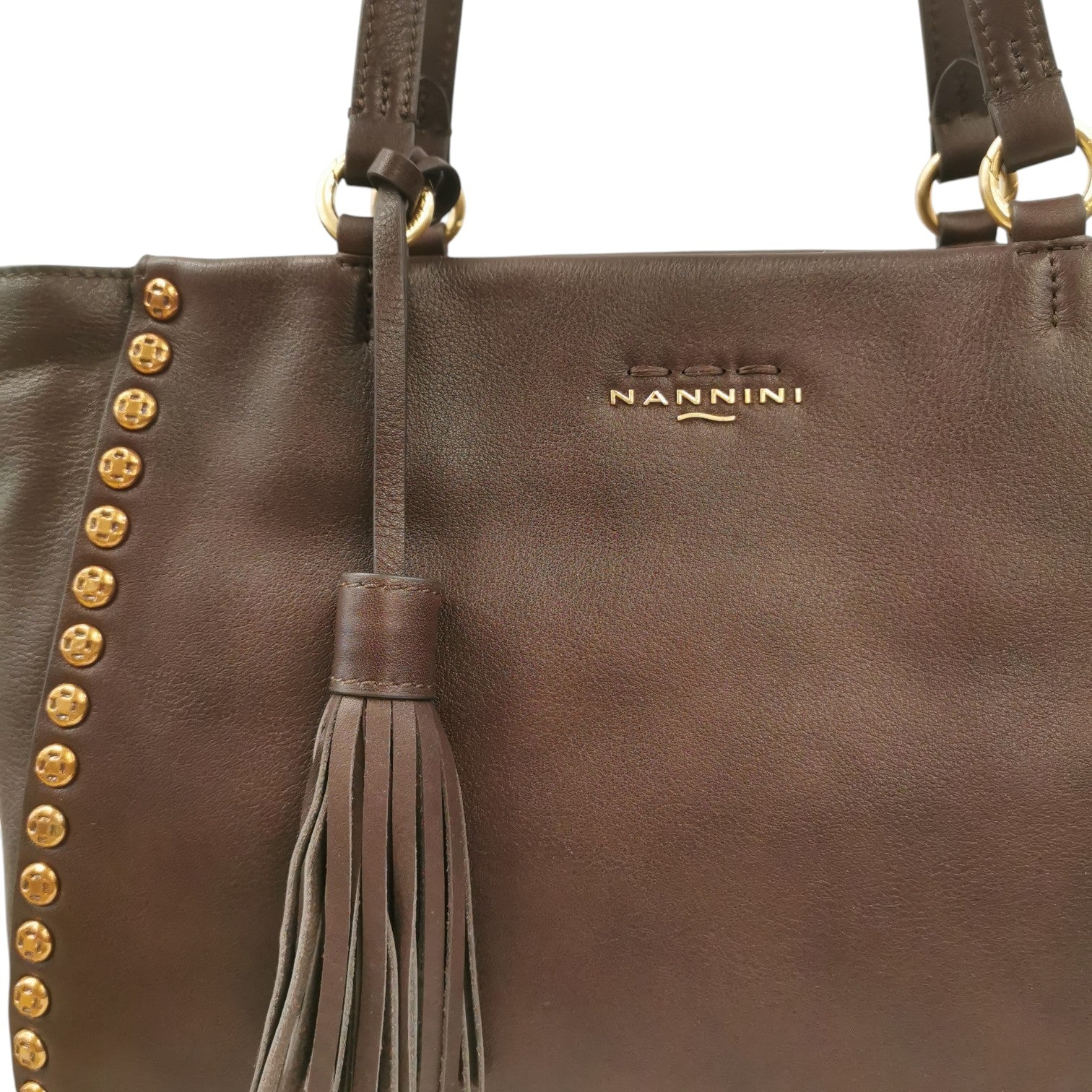 Nannini Firenze Borsa a Spalla Donna in Pelle Marrone con Borchie e Charm