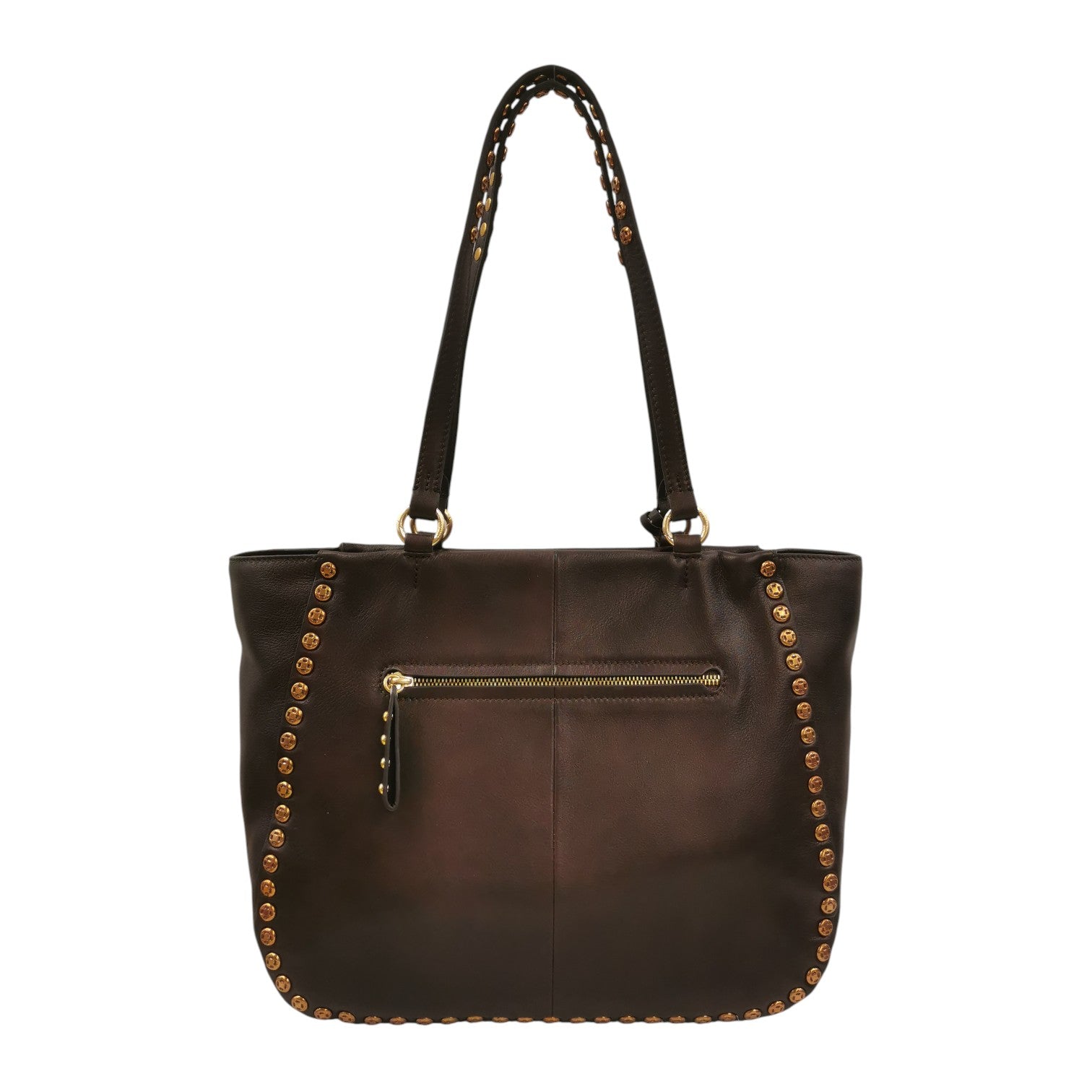 La Borsa a spalla firmata Nannini Firenze, realizzata in vera pelle marrone è caratterizzata da charm con frange removibile e da applicazione di borchie lungo i bordi della borsa, l'interno è foderato in tessuto di cui dispone di tasca aperta e chiusa con zip. Con un perfetto equilibrio tra tradizione e innovazione, Nannini rimane un marchio amato dalle donne che cercano eleganza, qualità e italianità.