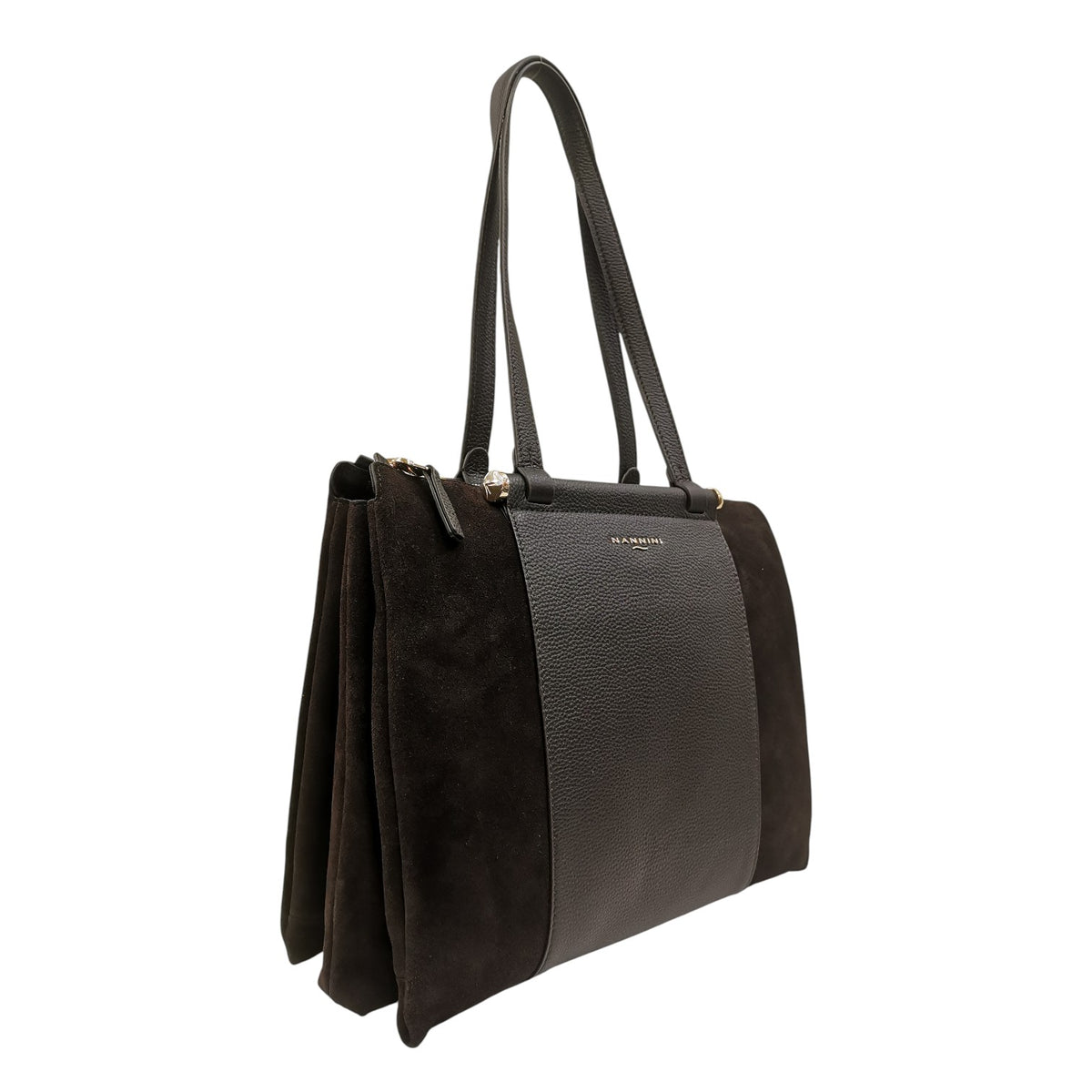 Nannini Firenze Borsa a Spalla Febe Donna in Pelle e Camoscio Sigaro