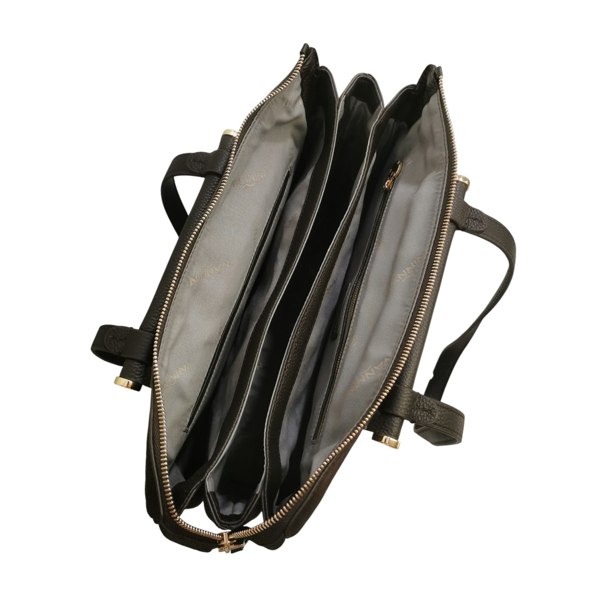 La Borsa a spalla firmata Nannini Firenze, della Linea Febe realizzata in pelle è caratterizzata da inserti in camoscio e da logo dorato frontale. All'interno presenta tre scomparti separati da un'unica chiusura con zip, in tessuto logato. Pratica e di tendenza, questa borsa è pensata per chi cerca uno stile audace e contemporaneo, mantenendo al contempo una nota di eleganza.