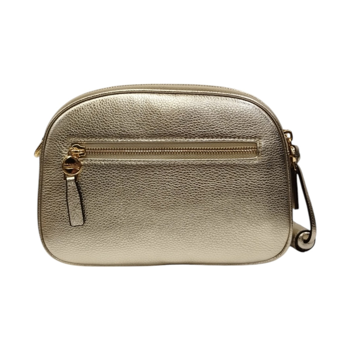 La Camera Bag firmata Nannini Firenze, realizzata in vera pelle laminata martellata è caratterizzata da logo frontale in metalleria color oro e da tracolla regolabile e removibile, inoltre dispone di doppio scompartimento foderato internamente in tessuto logato e presenta una tasca chiusa a zip.