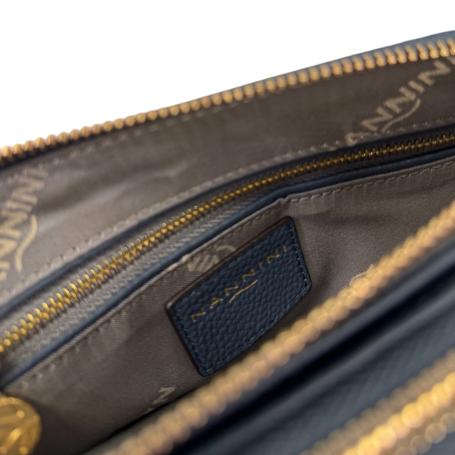 La Borsa a tracolla firmata Nannini Firenze, realizzata in pelle accessorio dall'attitude trasversale, perfetta indossata crossbody durante il giorno. L'interno è foderato in pelle logato Nannini, 3 scomparti con tasche porta oggetti. Le metallerie sono in galvanica oro.