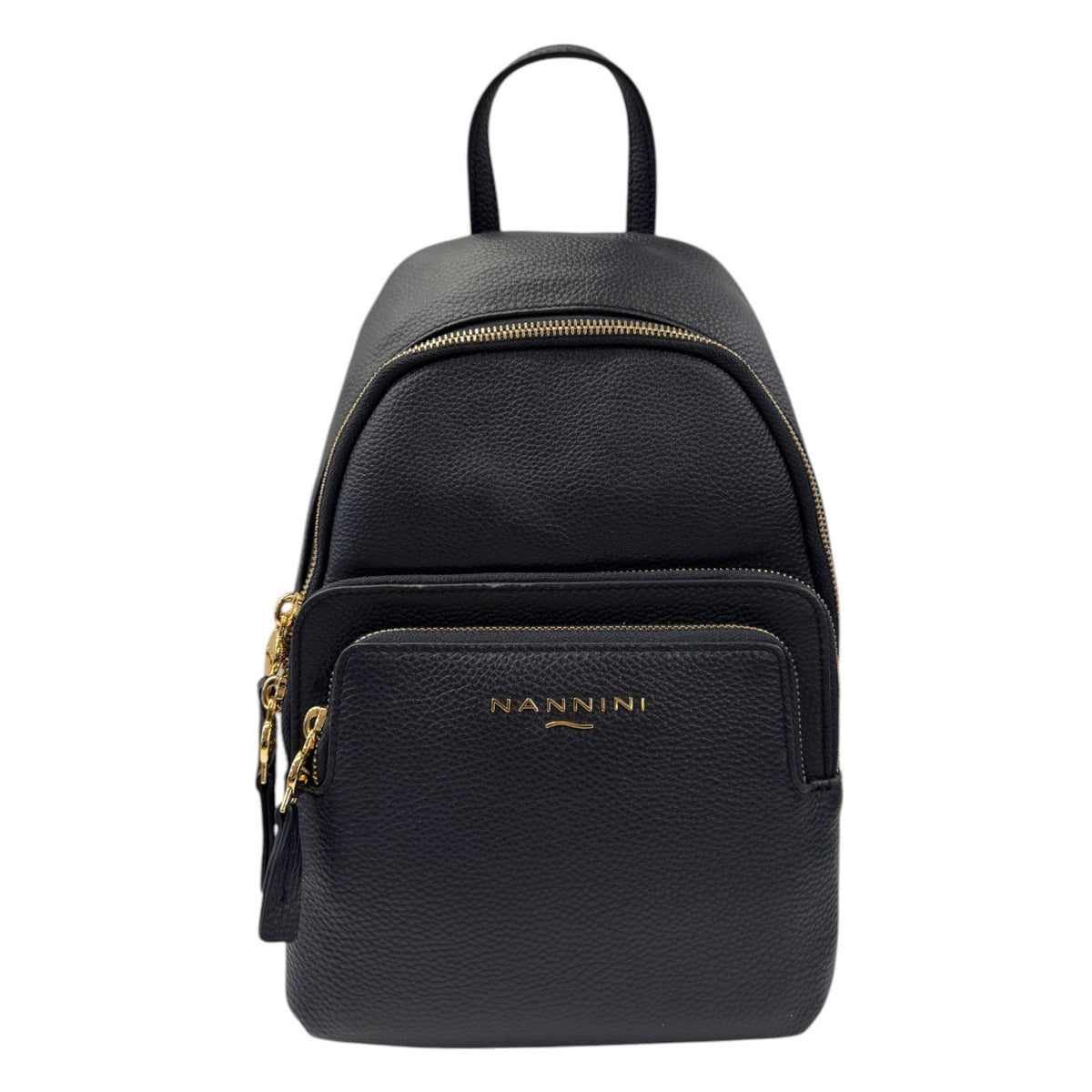 Lo Zaino firmato Nannini Firenze, modello casual ed elegante realizzato in morbida pelle martellata è caratterizzata da due tasche frontali chiuse con zip e da comodi spallacci regolabili, l'interno è foderato in tessuto logato di cui presenta una tasca con zip.