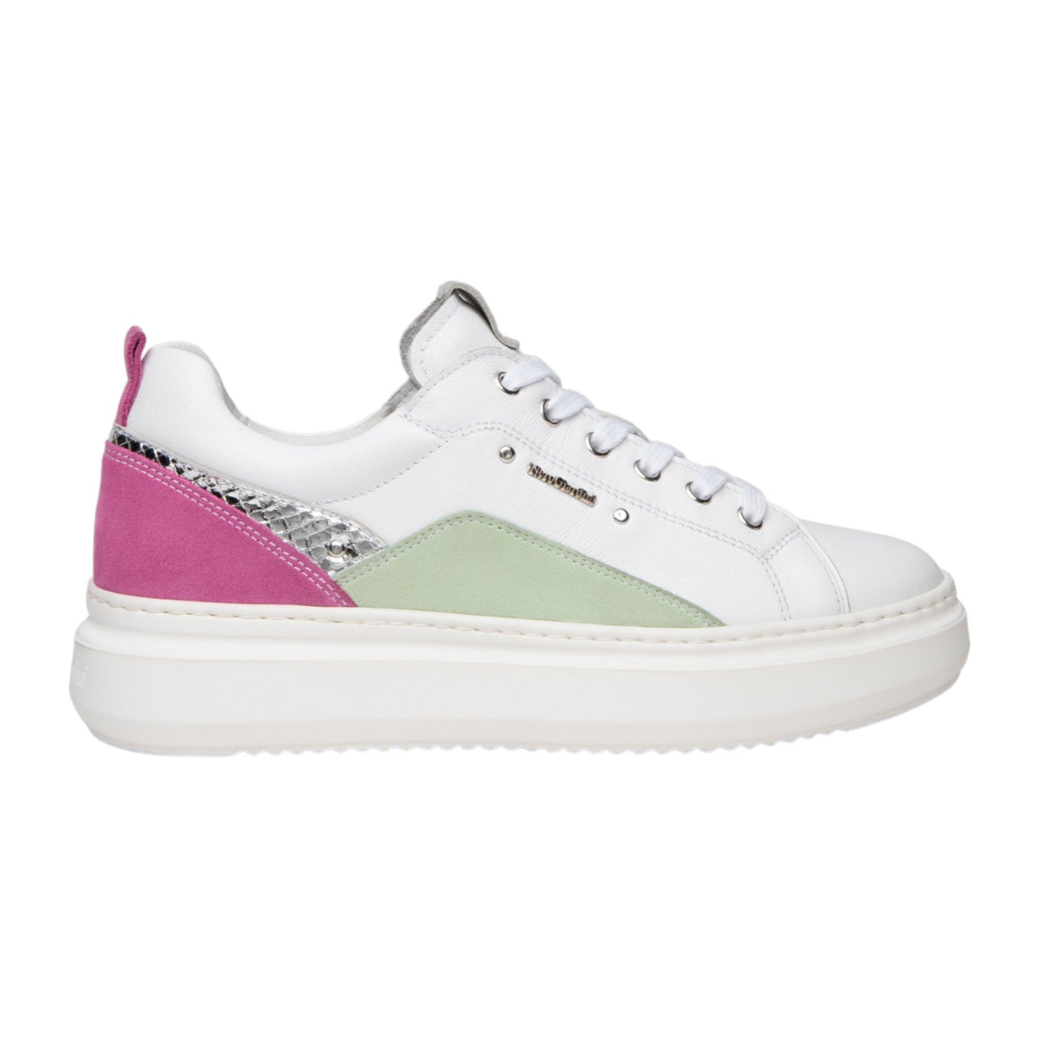 La Sneakers firmata Nero Giardini, grazie al loro design esclusivo e l'aggiunta scintillante di dettagli multicolor, realizzata in pelle premium che decora esterno, interno e soletta, assicura comfort e resistenza. Il tacco a zeppa di 4cm, unito al fondo a cassetta, offre una stabilità ideale senza rinunciare a un'estetica moderna e accattivante.