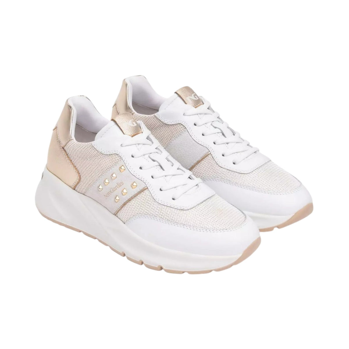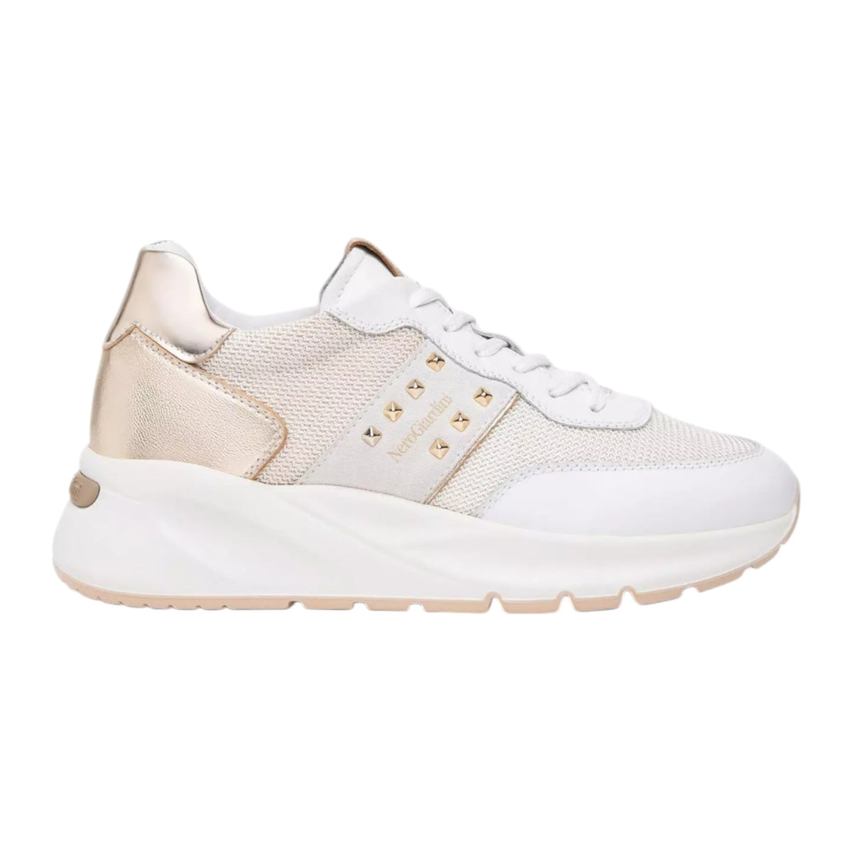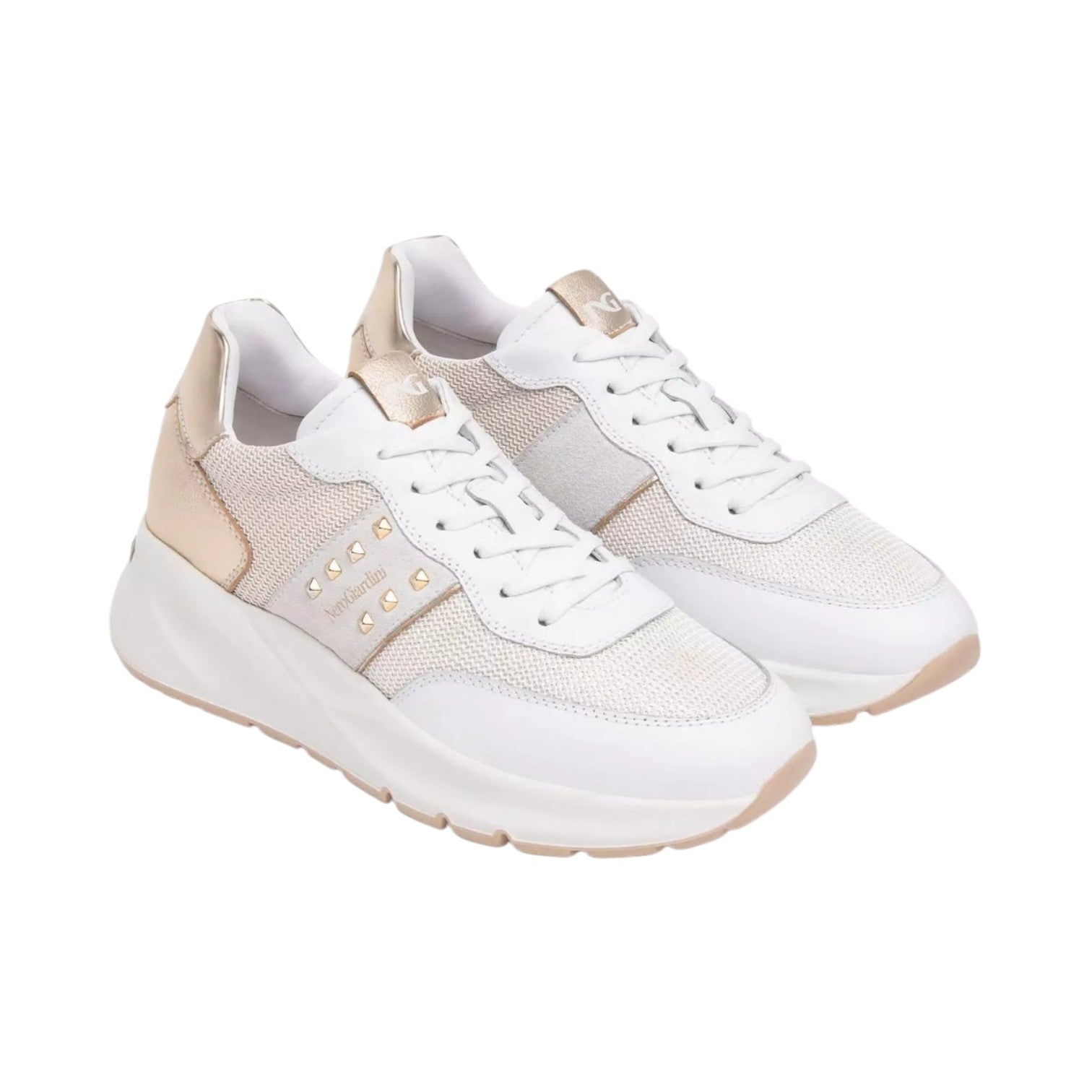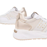 Nero Giardini Sneakers Bianca Oro con Borchiette da Donna