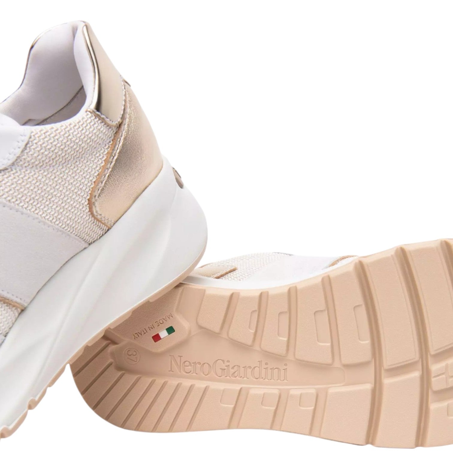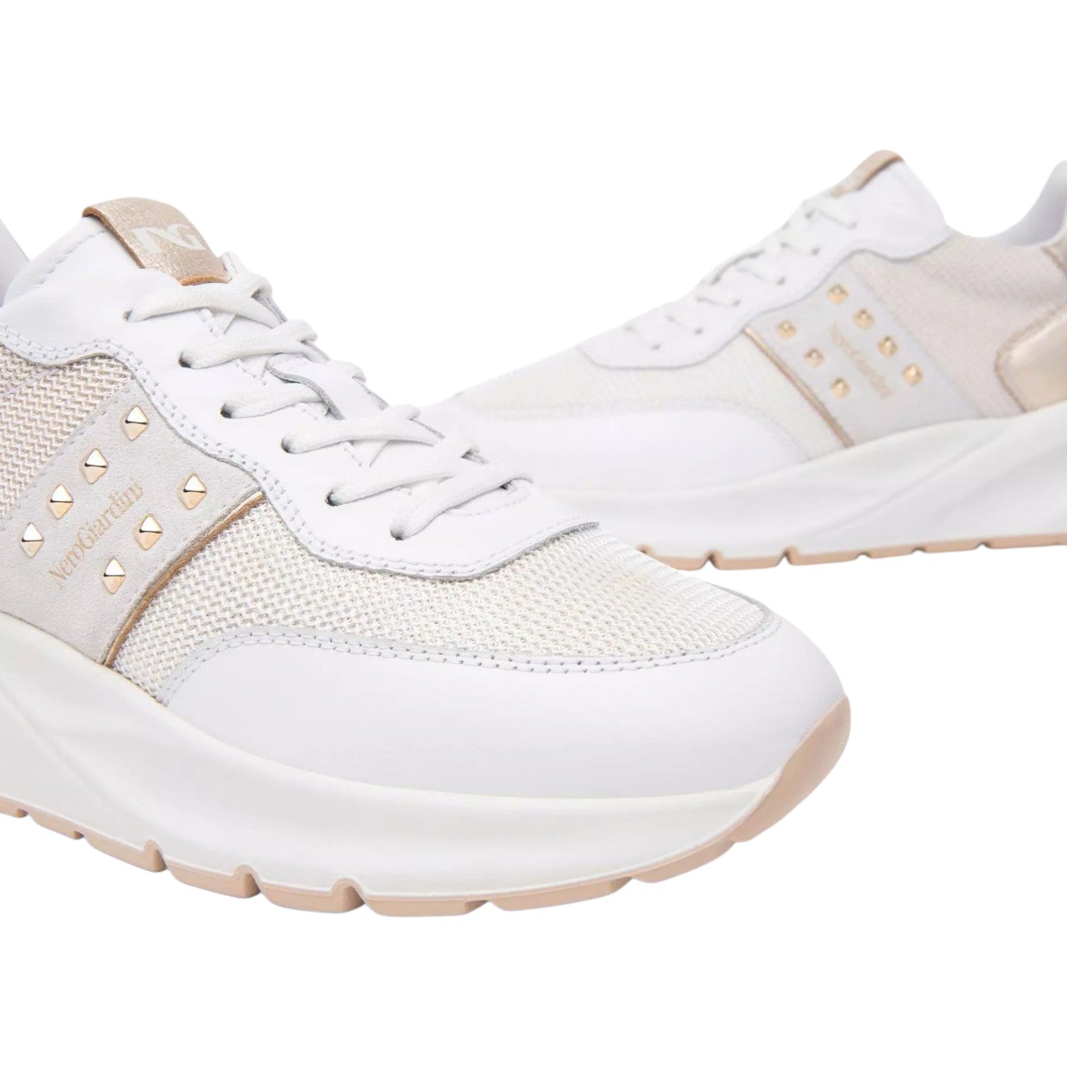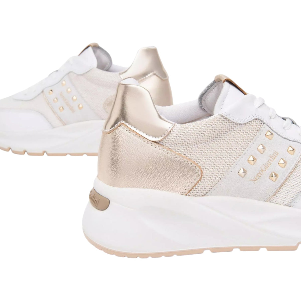 Nero Giardini Sneakers Bianca Oro con Borchiette da Donna