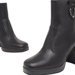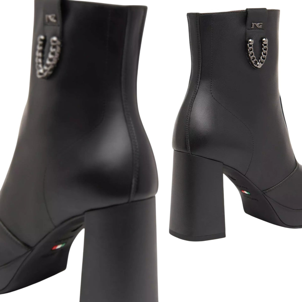 Nero Giardini Stivaletto Donna in Pelle Nera con Catena Laterale e Tacco Largo Alto 90mm