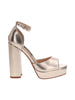 Il Sandalo firmato Nine West, realizzato in similpelle gold con comodo plateau di 3 cm. Morbido plantare in similpelle per garantire una comoda calzata.