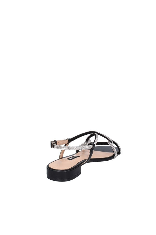 Il Sandalo firmato Nine West, realizzato in similpelle nera con brillantini silver e sottopiede in tessuto. Dispone di chiusura cinturino alla caviglia e plantare morbido.