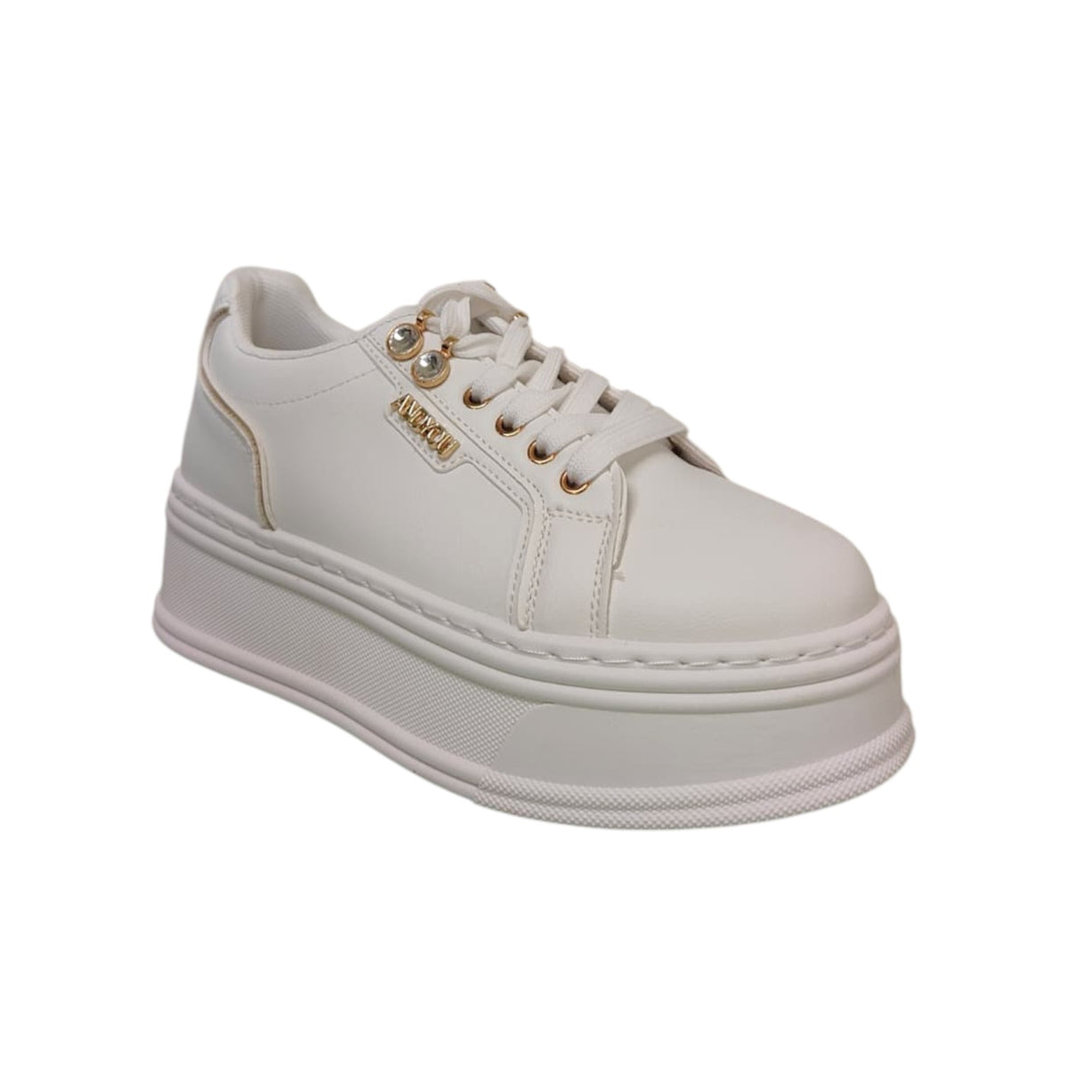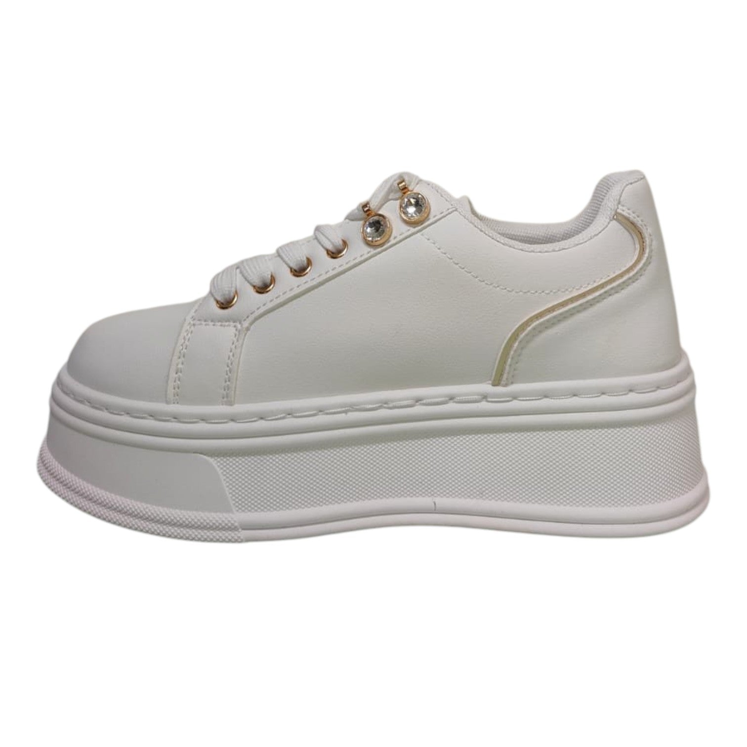 Ninì Sneakers Donna in Ecopelle Bianca Platform con Dettagli Oro