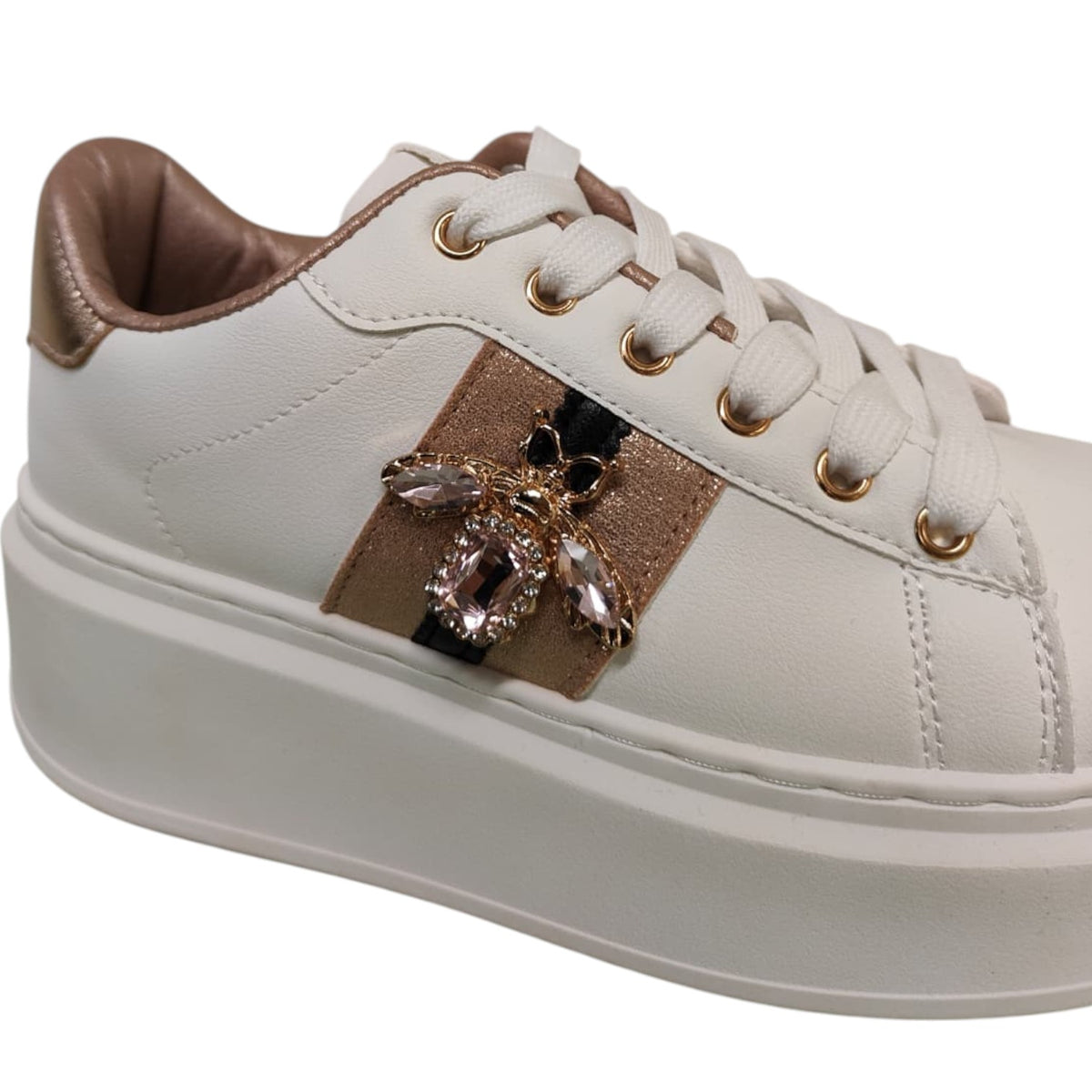 Ninì Sneakers Donna in Ecopelle Bianca Platform con Farfalla Accessorio