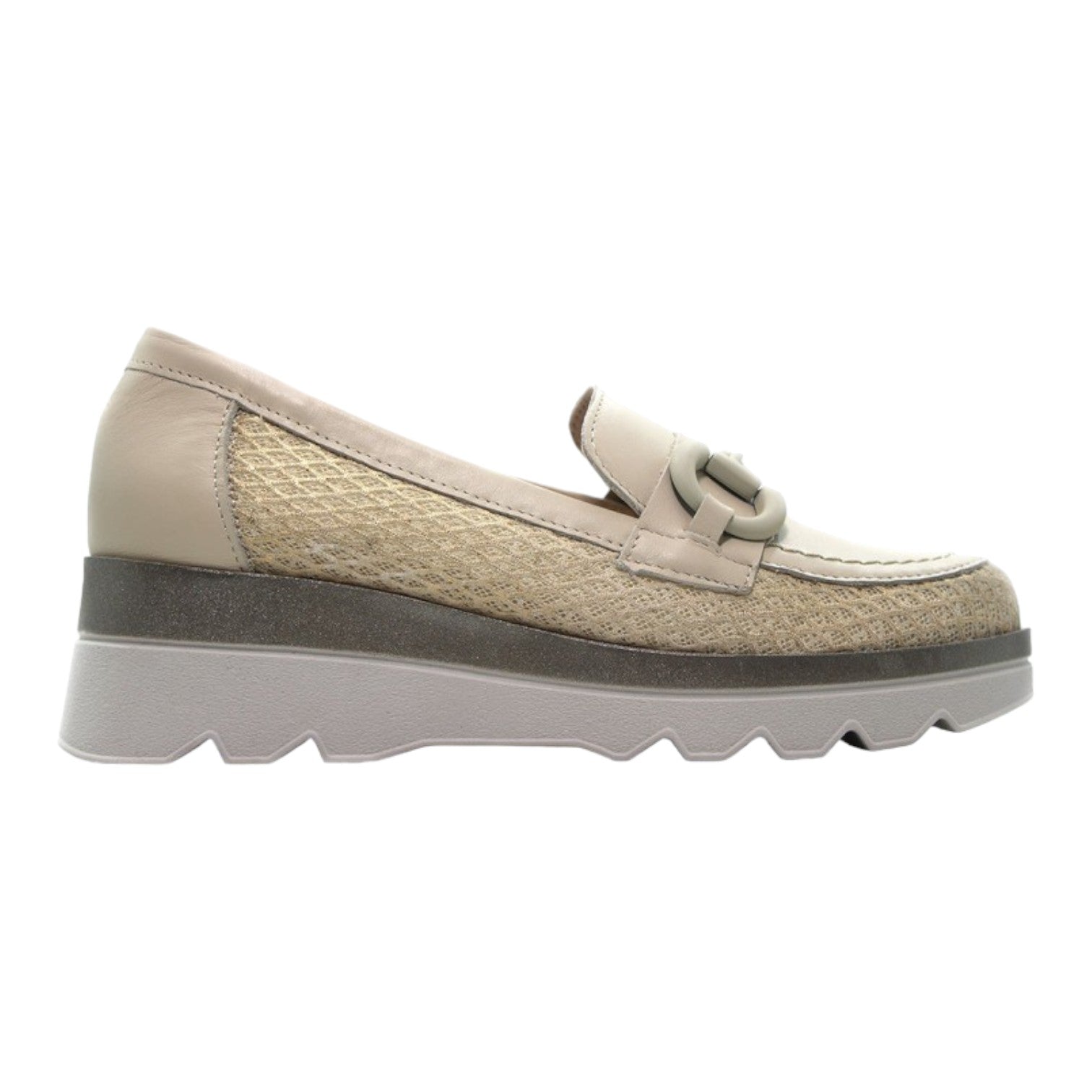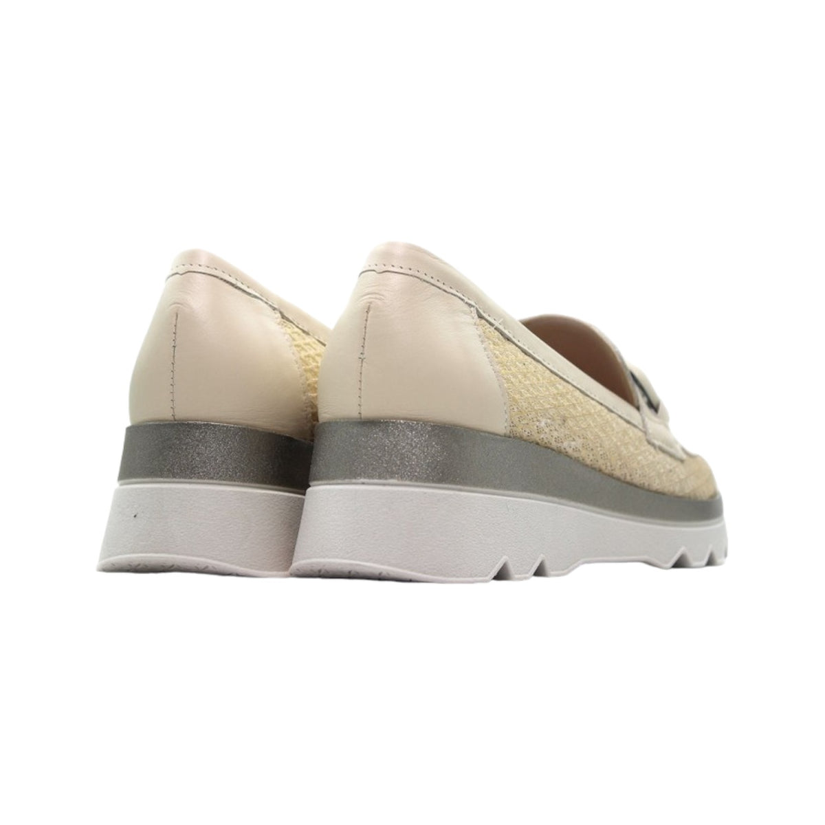 Pitillos Mocassino Donna in Pelle Crema con Catena e Inserto in Tessuto