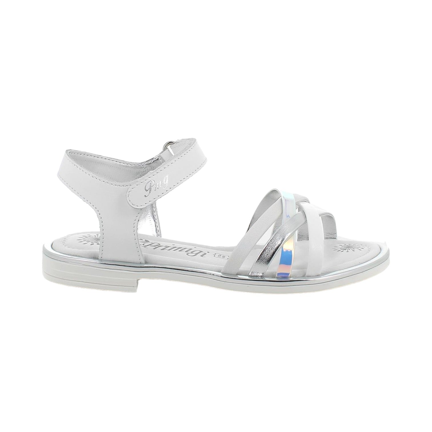 Il Sandalo firmato Primigi, realizzato in pelle laminata bianca è caratterizzata da fascette incrociate dal design minimale, ha un'immagine pulita e raffinata, e la scelta di materiali differenti li rende originali e ricchi di personalità. La suola sottile con piccolo tacco ricorda quelle in cuoio, ma è morbidissima ed antiscivolo, mentre il plantare in pelle offre un delicato appoggio.