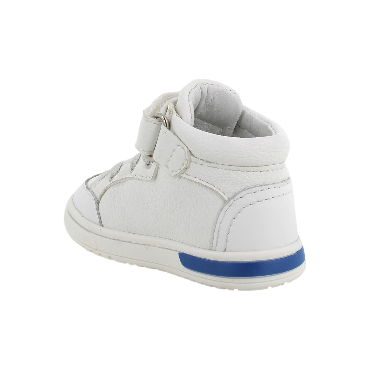 La Sneakers firmata Primigi, realizzata in pelle bianca è caratterizzata da dettagli neri e blu, sono anche bellissime e facili da abbinare agli outfit di ogni giorno. Si regolano grazie al laccio elastico e si bloccano con lo strappo, mentre il sottopiede anatomico è estraibile e rivestito in pelle per assicurare traspirabilità e igiene.