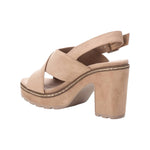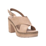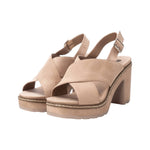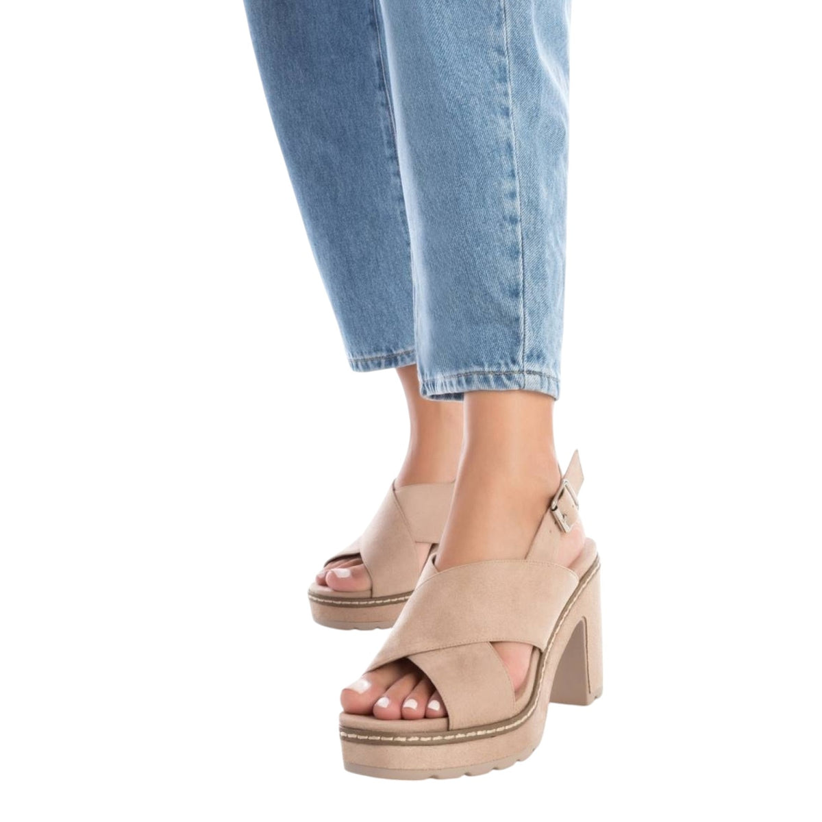 Il Sandalo firmato Refresh, realizzato in camoscio sintetico qui proposto nella variante beige è caratterizzato da ampia tomaia con fasce incrociate e da cinturino alla caviglia regolabile, presenta un comodo plateau e un tacco largo di 9cm.