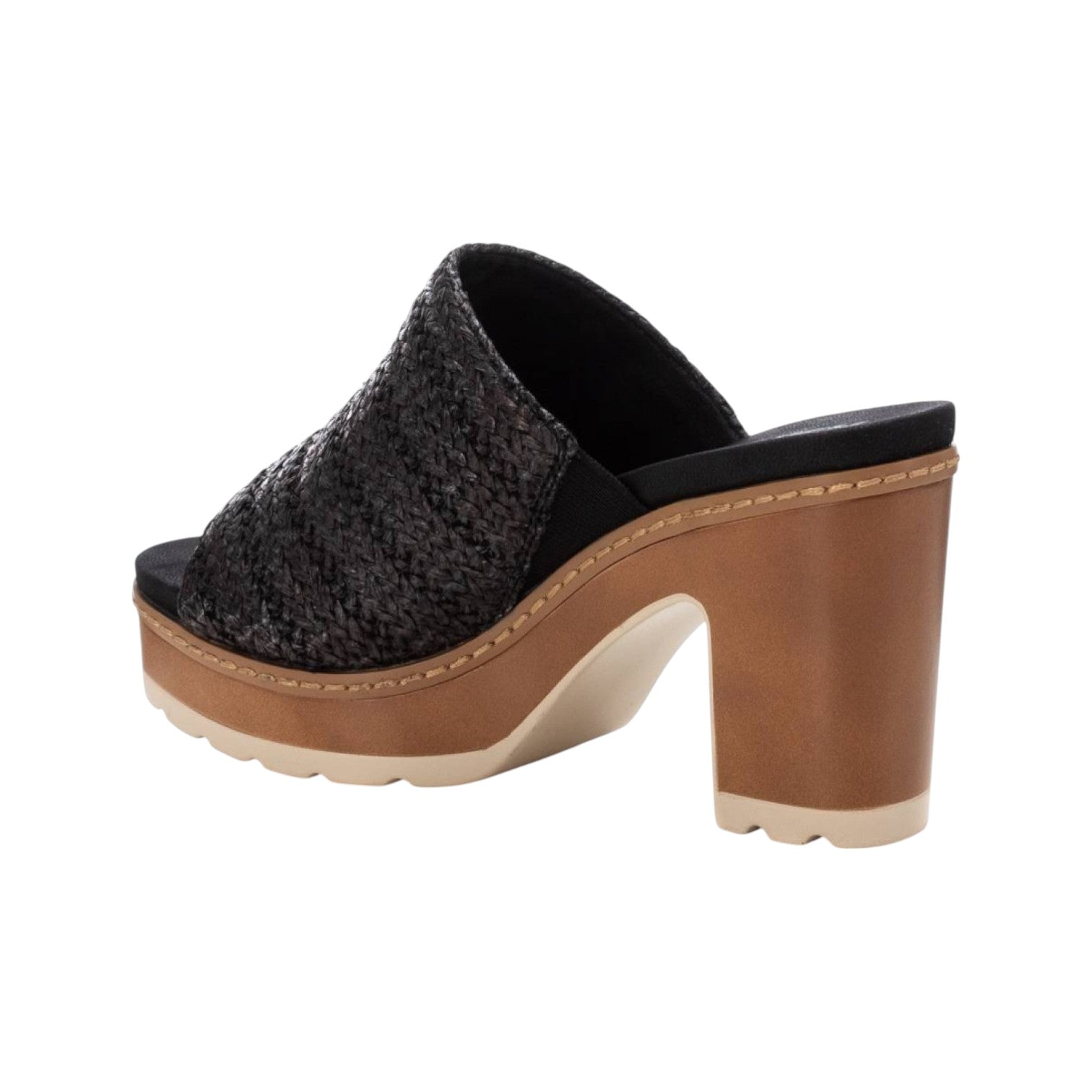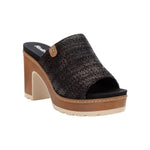 Lo Scalzato firmato Refresh, realizzato in raffia nera presenta logo distintivo sul lato, dal design raffinato presenta una tomaia elegante che richiama la raffinatezza della moda contemporanea. Il tacco alto da 9cm dona slancio alla figura. Con una suola antiscivolo e una suola imbottita.