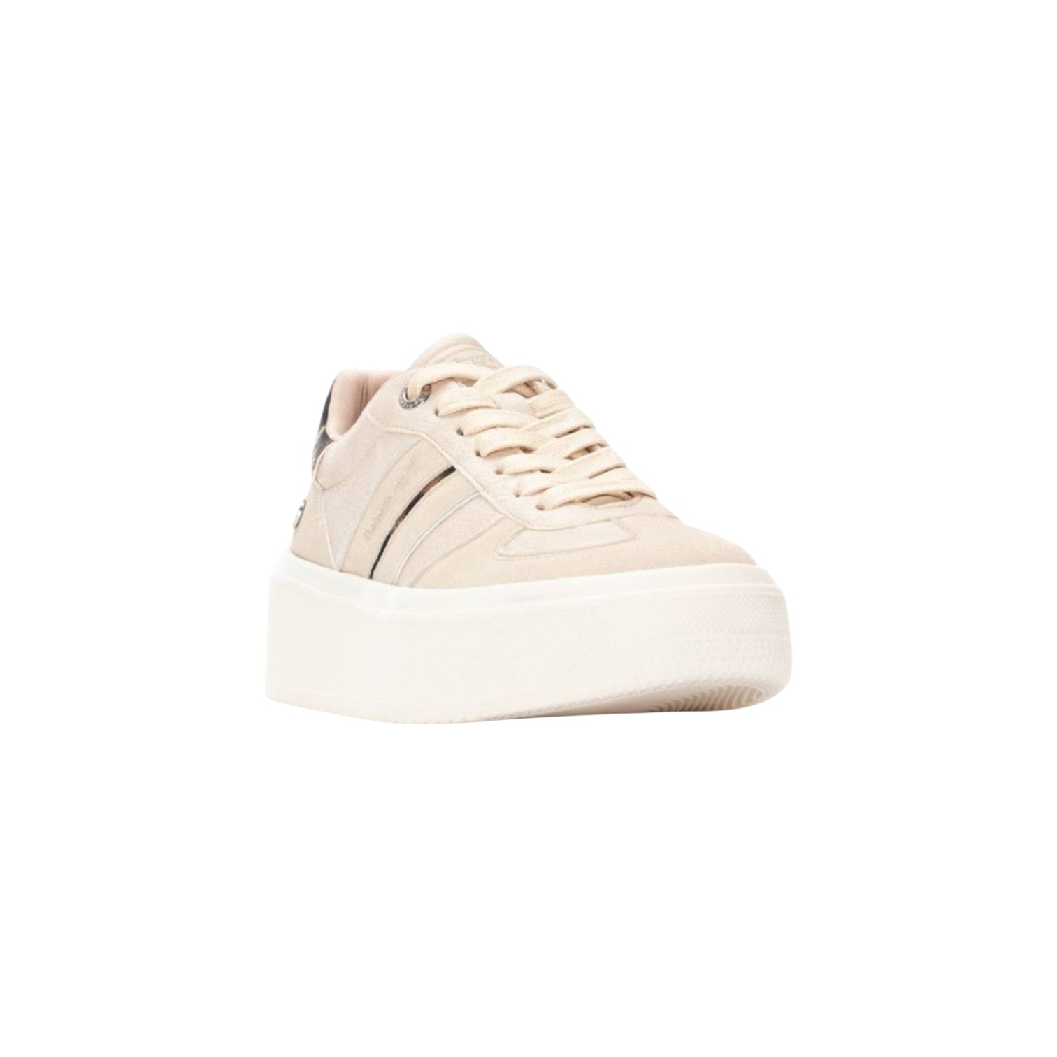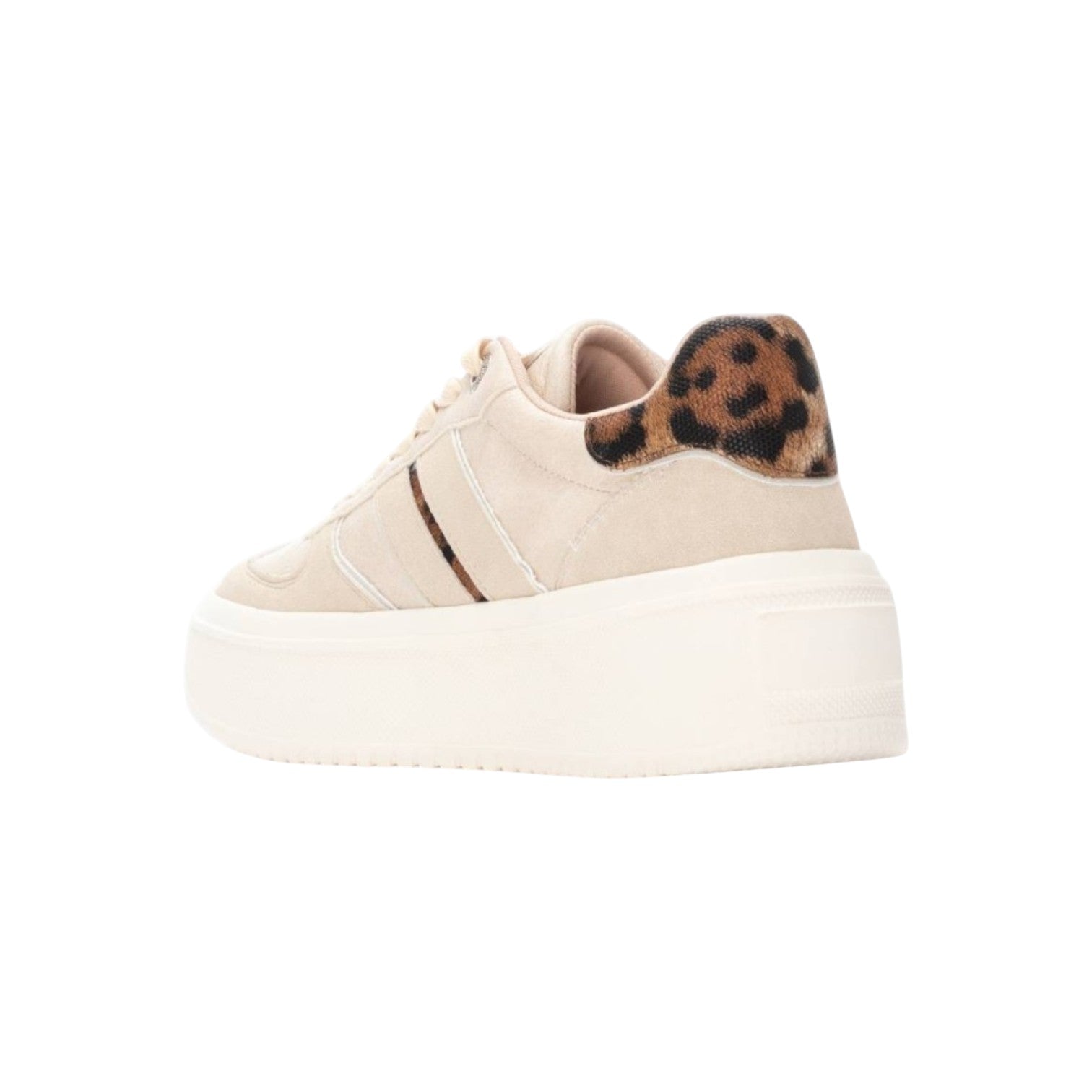 Refresh Sneakers Platform Donna in Ecopelle Beige con Dettaglio Leopardato