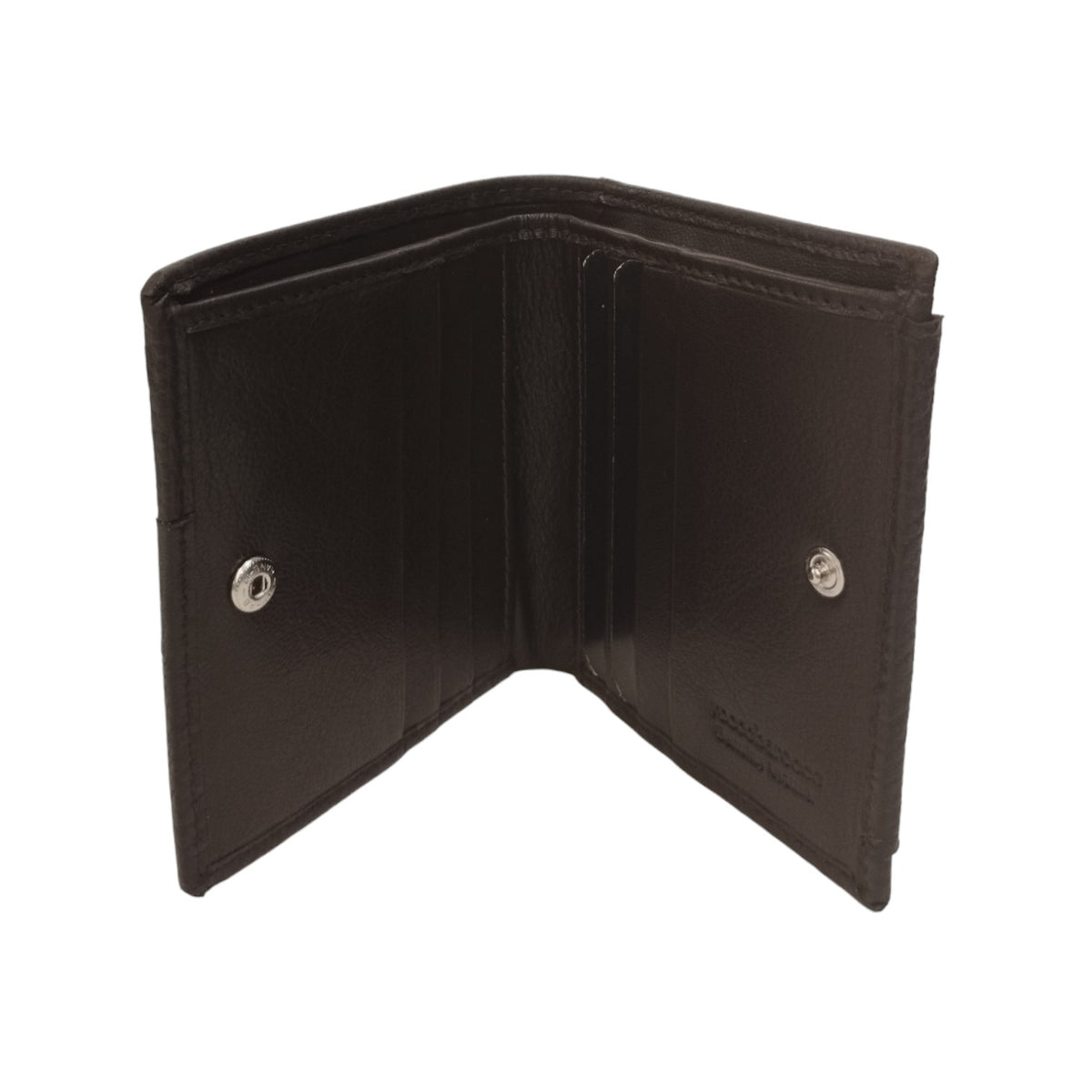 Il Portafoglio firmato Roccobarocco, realizzato in ecopelle martellata è caratterizzato dalle fessure interne per carte e documenti, scomparto per banconote, scomparto monete posteriore e chiusura a bottone automatico.