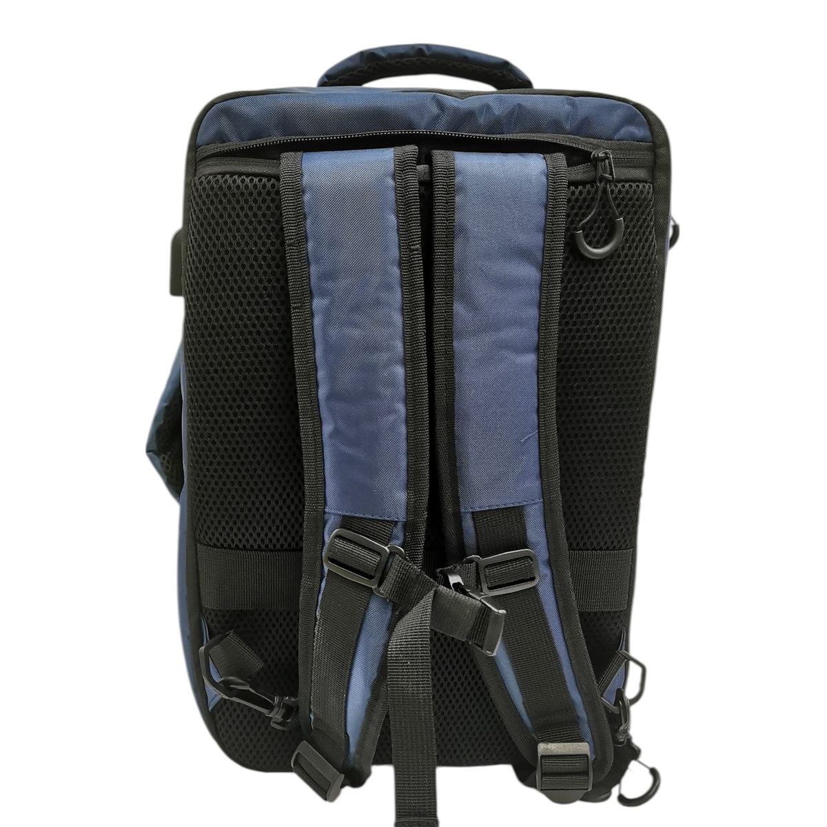 Lo Zaino firmato Ravizzoni, realizzato in tessuto impermeabile e durevole, presenta un design ergonomico facile da indossare, utilizzabile sia come zaino che come borsone. Dispone di tre tasche frontali con zip, cuciture rinforzate, spallaci e maniglia superiore e laterale imbottiti, inoltre è caratterizzato da lato posteriore in materiale a rete traspirante con fascia posteriore progettata per essere fissata al bagaglio al mano, porta USB e laptop.