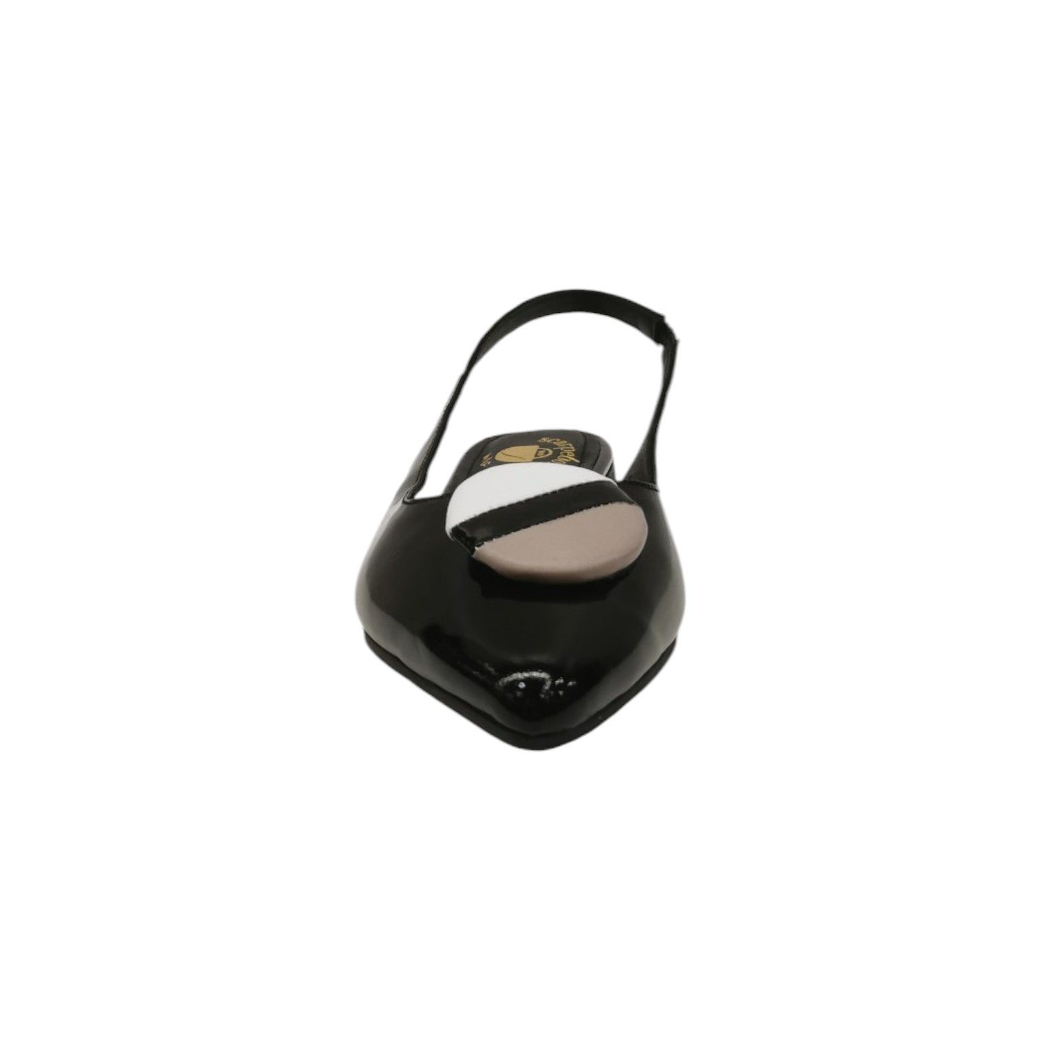 La Chanelle firmata Scarpeborseonline, bella e di tendenza realizzata in vernice è caratterizzata da una punta sfilata davanti e da accessorio sulla punta bicolore, con cinturino elasticizzato, inoltre presenta un plantare imbottito in pelle per un maggior comfort.