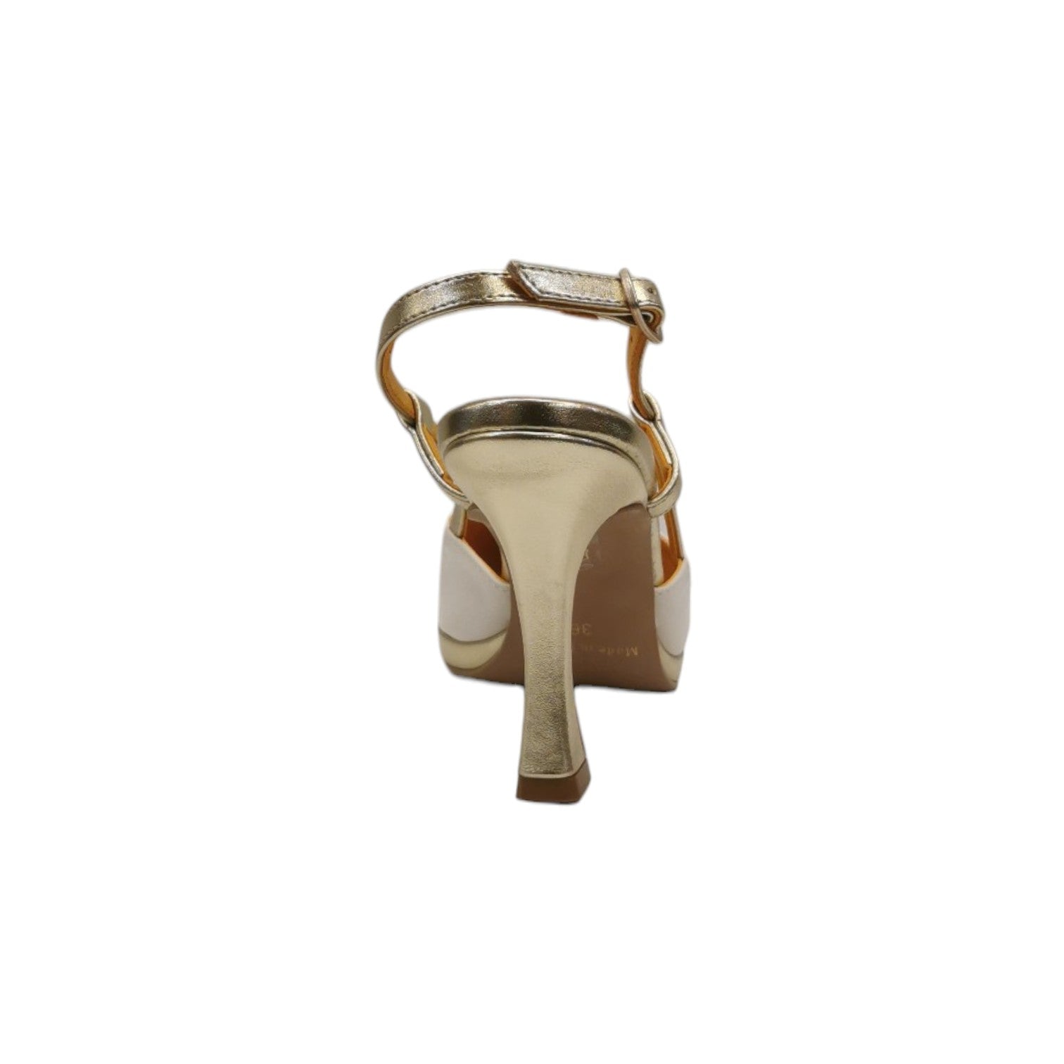 La Chanelle firmata Scarpeborseonline, realizzata in ecopelle è caratterizzata da una punta sfilata davanti e da dettagli burro platino, inoltre dispone di interno foderato in ecopelle con sottopiede rivestito in pelle, il tacco alto 10cm con un mini plateau offre un maggior comfort.