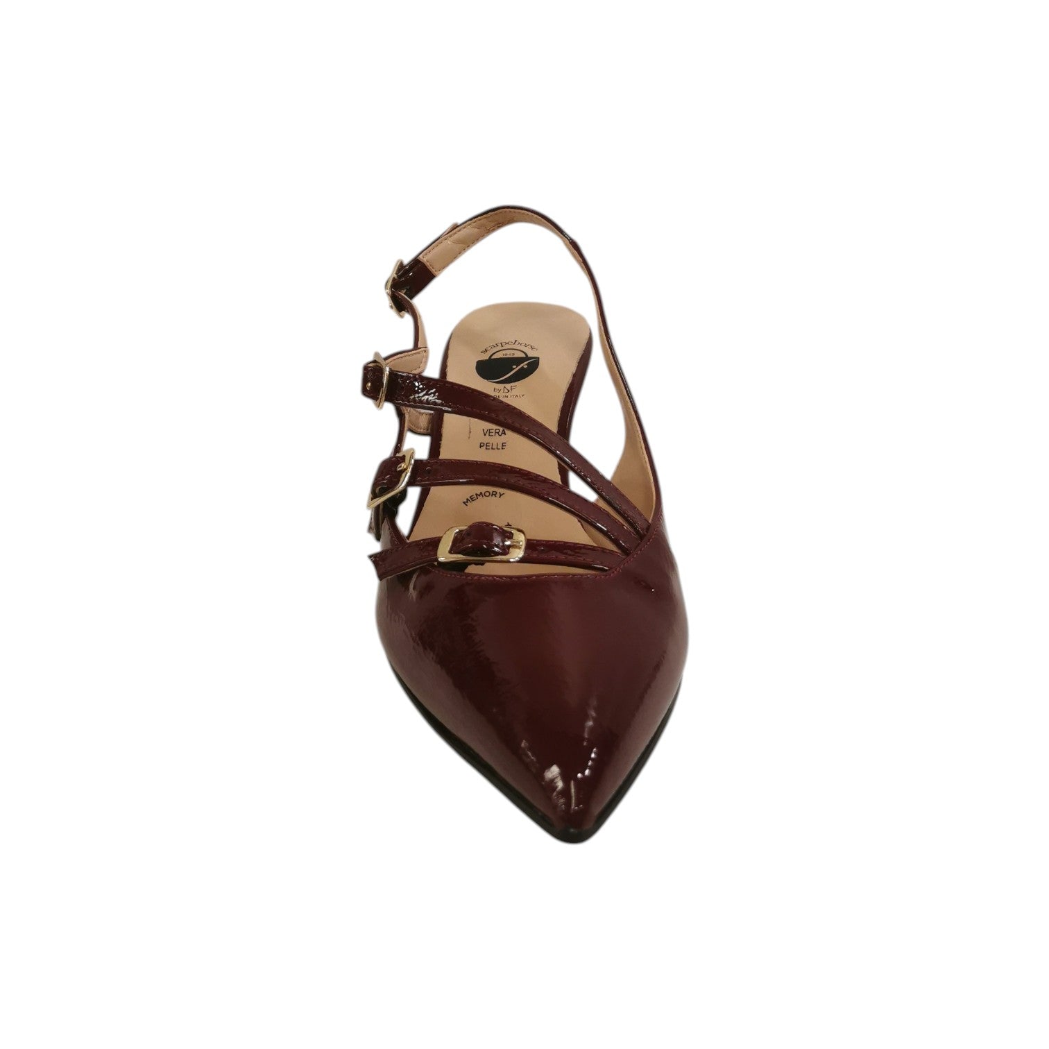 La Chanelle firmata Scarpeborseonline, realizzata in vernice con cinturini sulla punta nella raffinata variante bordeaux in vernice unisce eleganza e comfort. Con punta sfilata e interno foderato in ecopelle, garantisce una calzata morbida e traspirante. Il sottopiede rivestito in pelle assicura durata e comodità, mentre il tacco alto 6cm valorizza la silhouette con classe.