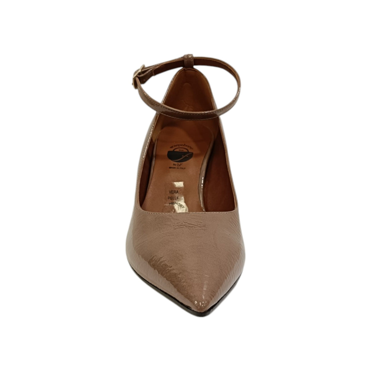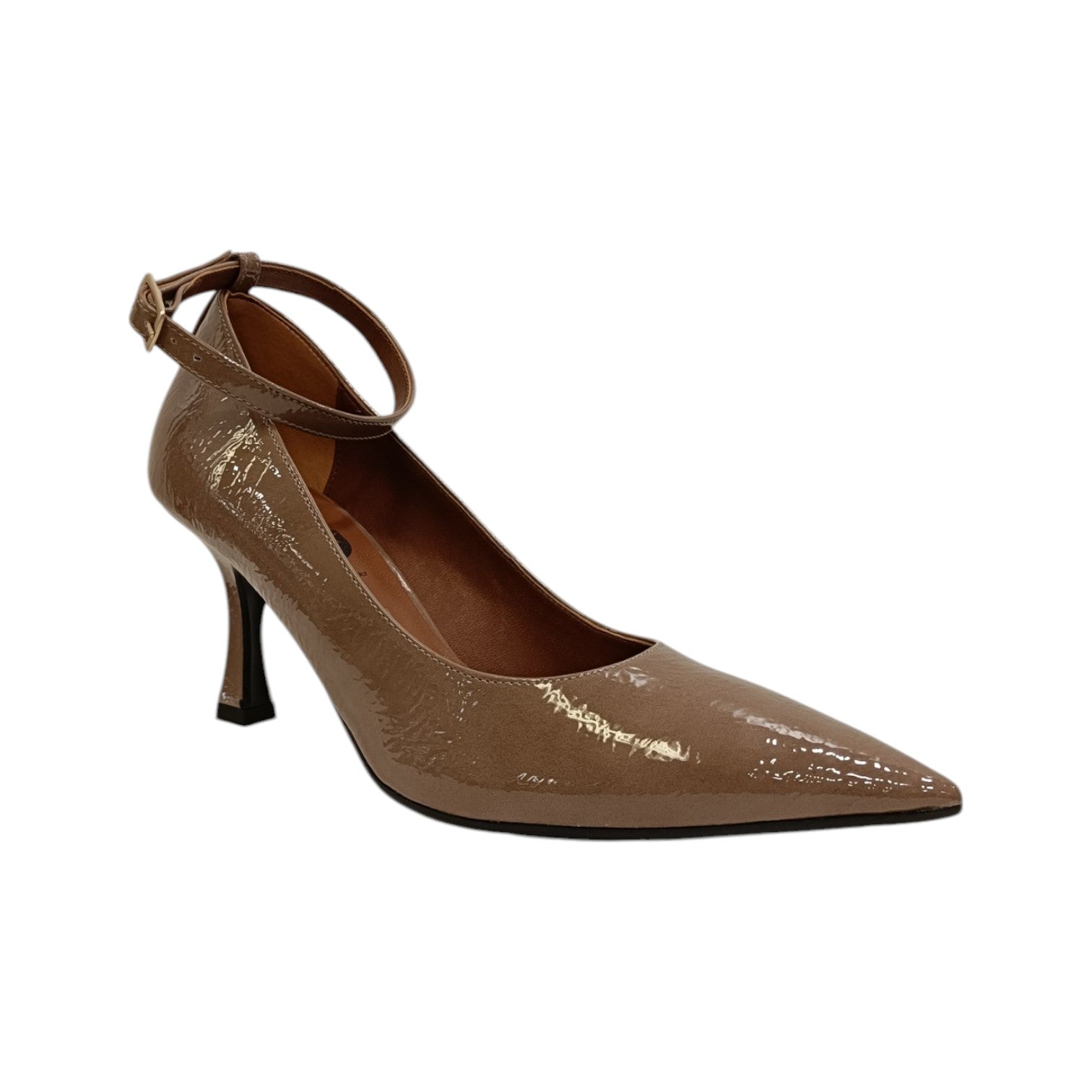 Il Décolleté firmato Scarpeborseonline, realizzato in vernice qui proposto in questa variante tortora è caratterizzato da una punta sfilata davanti, inoltre dispone di interno foderato in ecopelle con sottopiede rivestito in pelle, il tacco largo di 6cm offre un maggior comfort. Presenta un comodo braccialetto regolabile alla caviglia.