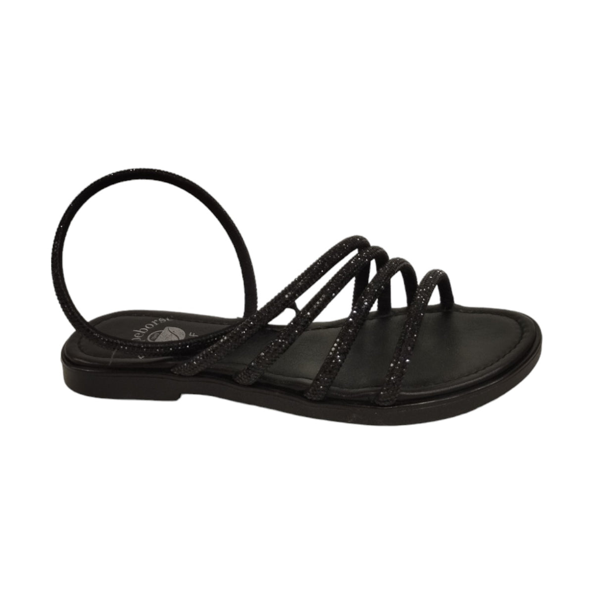 Scarpeborseonline Sandalo Basso Nero comnStrass