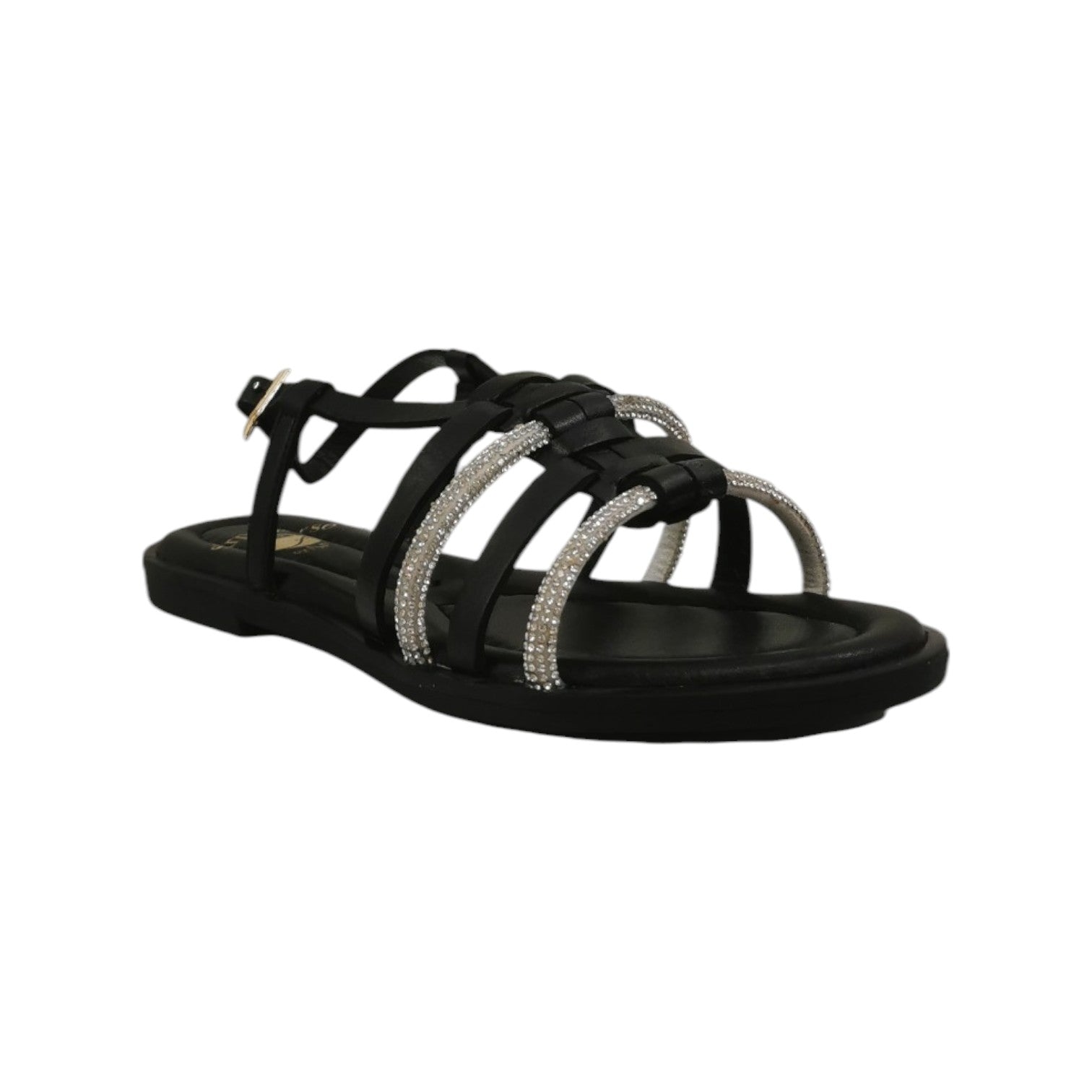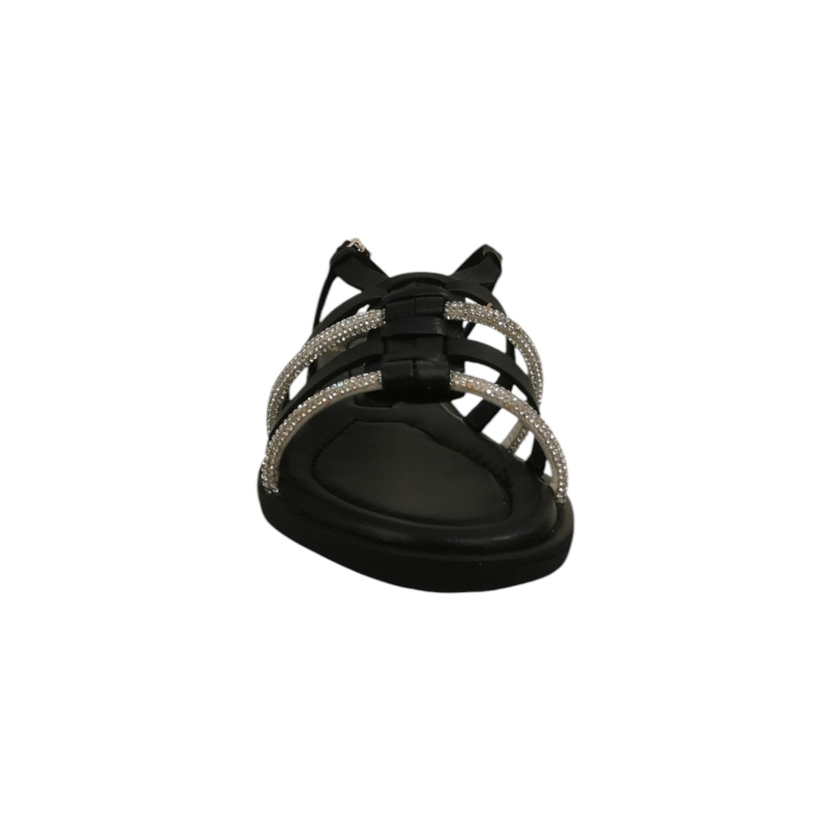 Scarpeborseonline Sandalo Basso Nero con Strass da Donna