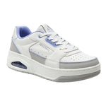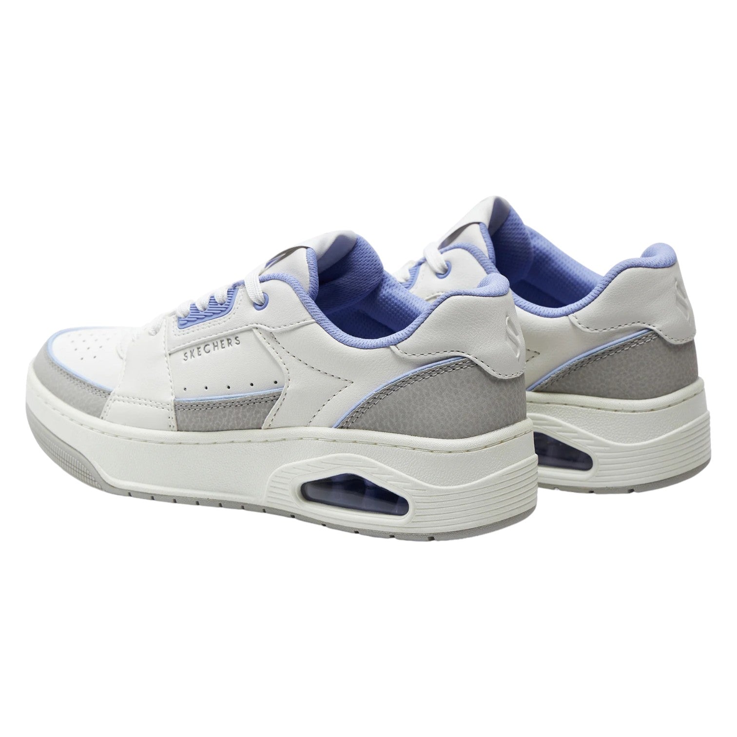 La Sneakers firmata Skechers, allacciata in stile court presenta una tomaia in pelle goffrata con bordino a contrasto, soletta Skechers Air-Cooled Memory Foam® e un'intersuola con airbag Skech-Air® visibile.