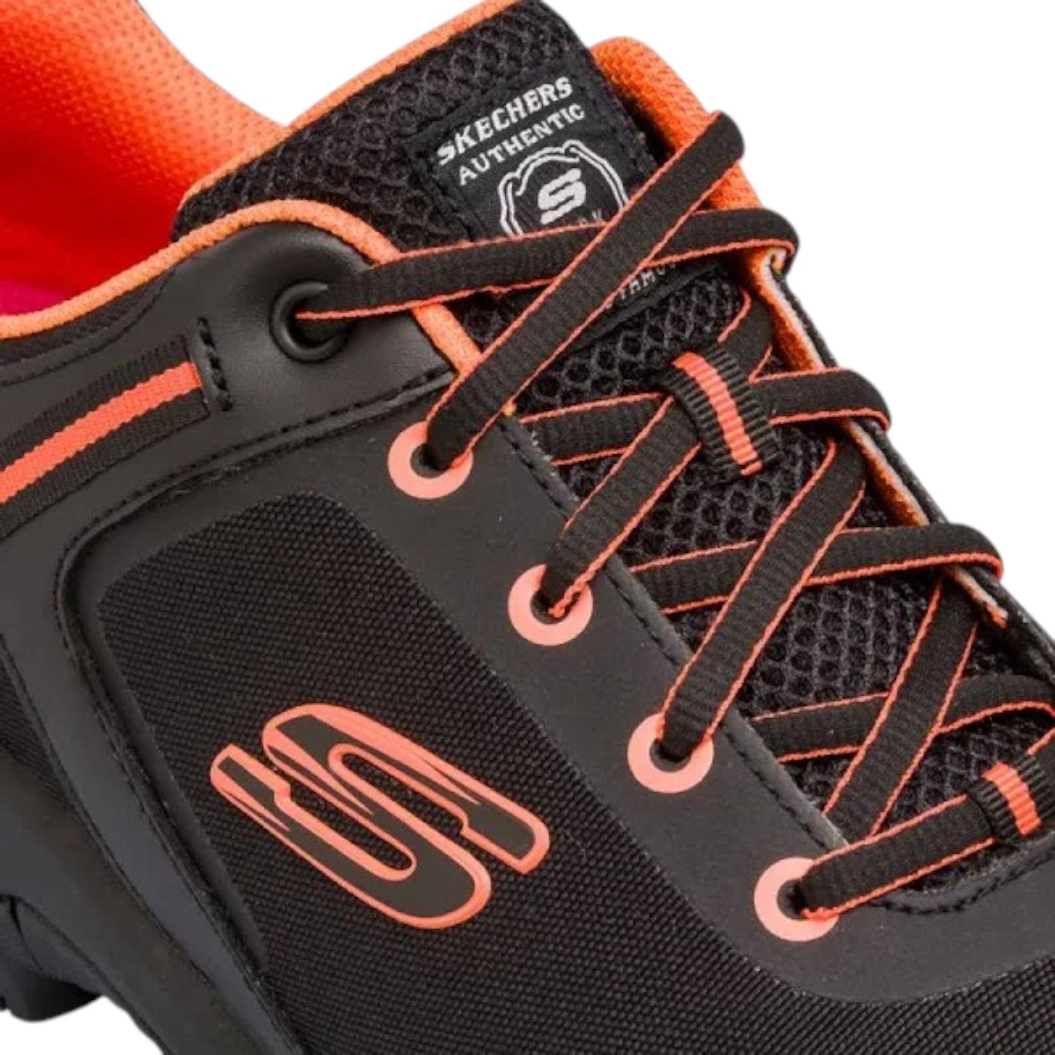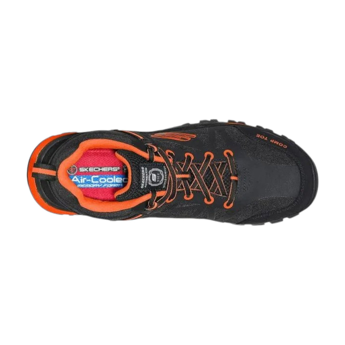 La Sneakers firmata Skechers, antinfortunistiche nere e arancio da Uomo, Skechers Work™ Air Cooled. Sono realizzate con tomaia in ecopelle e tessuto, mentre la soletta in tessuto è in Memory Foam. La suola ha una texture anti grip per totale sicurezza.