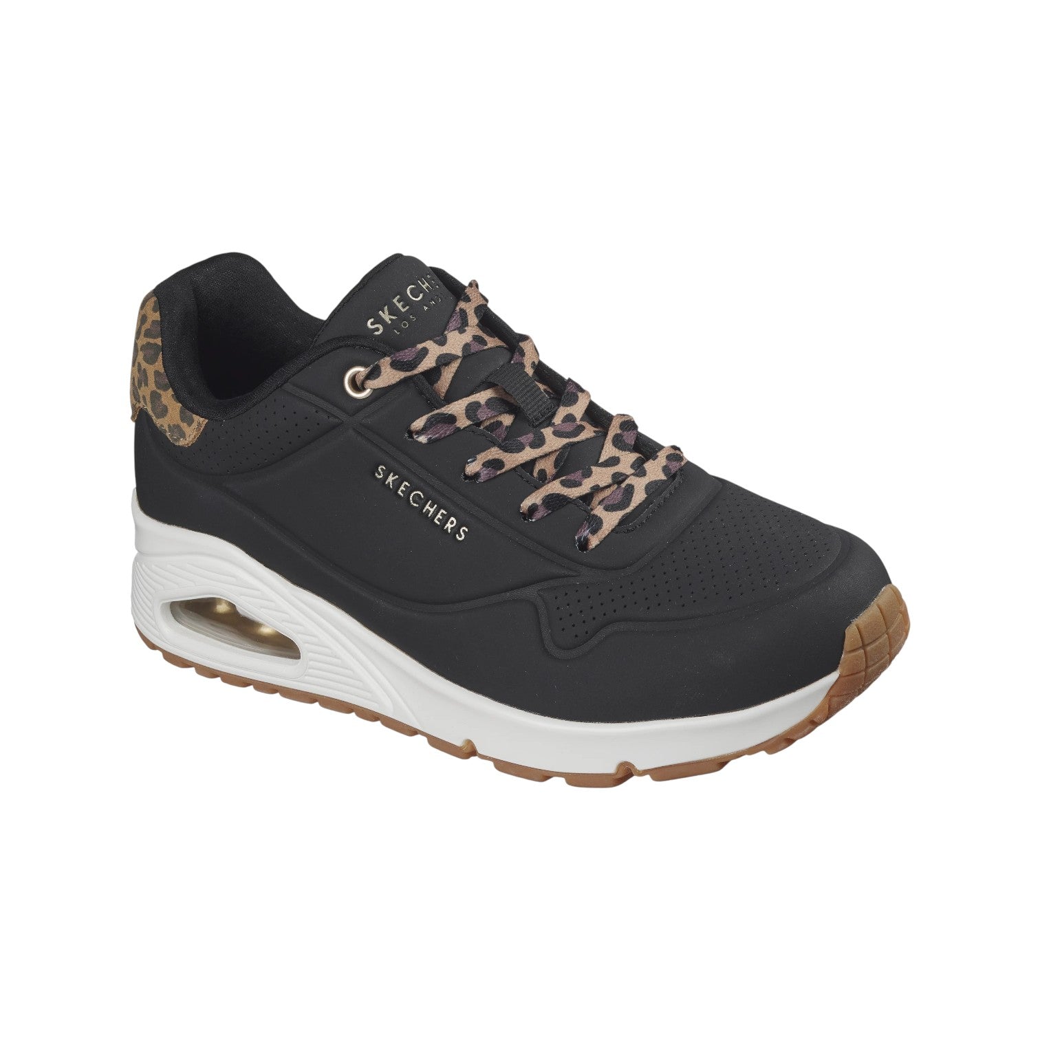 Skechers Sneakers Donna in Ecopelle Nera Leopardato Uno - Jungle Nite
