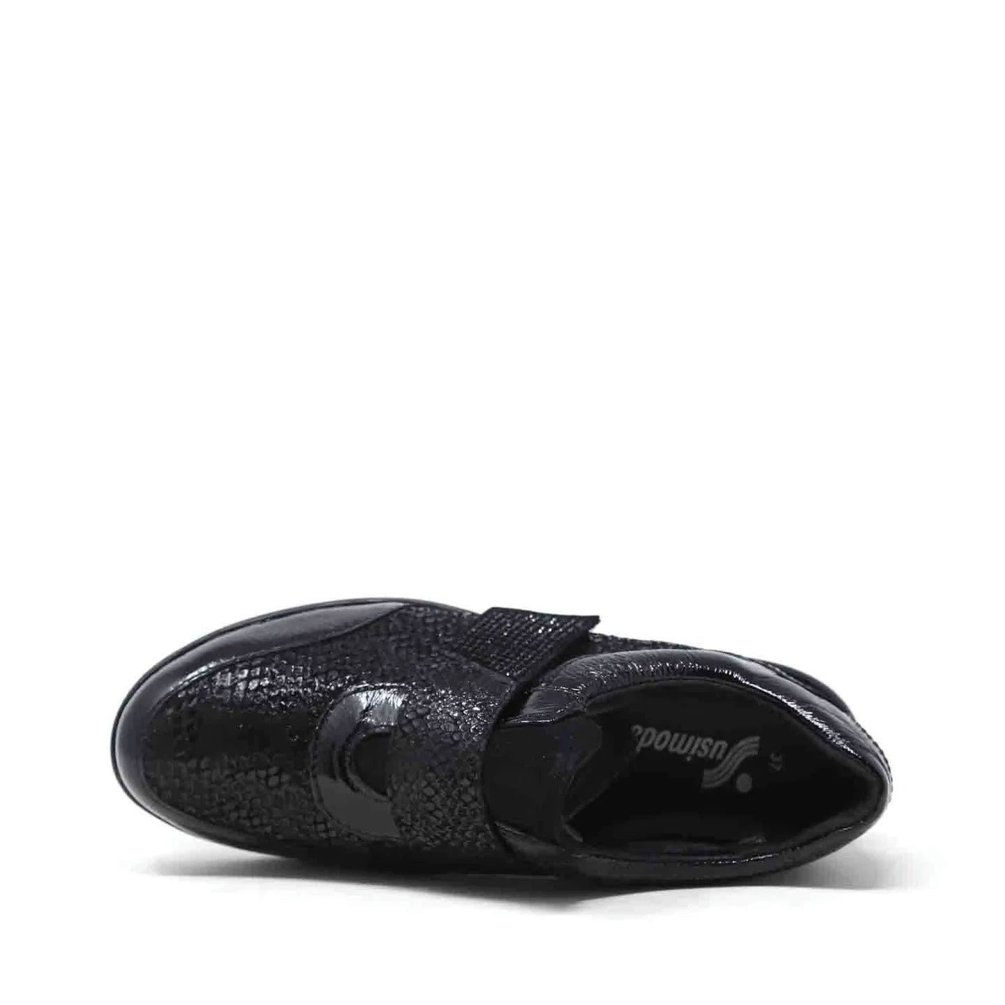 La Scarpa con strappo firmata Susimoda, realizzata in pelle presenta degli inserti in vernice e camoscio, con morbido interno foderato in tessuto e sottopiede in pelle removibile.