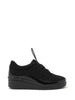 Lo Slip On firmato Susimoda, realizzato in camoscio presenta degli inserti in pelle laminata, decorato con strass tono su tono. Presenta un morbido interno foderato in tessuto e sottopiede in pelle removibile, facile calzata grazie ai lacci elastici.