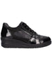 La Scarpa firmata Susimoda, realizzata in pelle è caratterizzata da rifiniture in vernice con una chiusura con lacci e zip laterale. Presenta una morbida fodera in tessuto, con sottopiede in pelle e fondo in gomma con zeppa di 4,5cm.