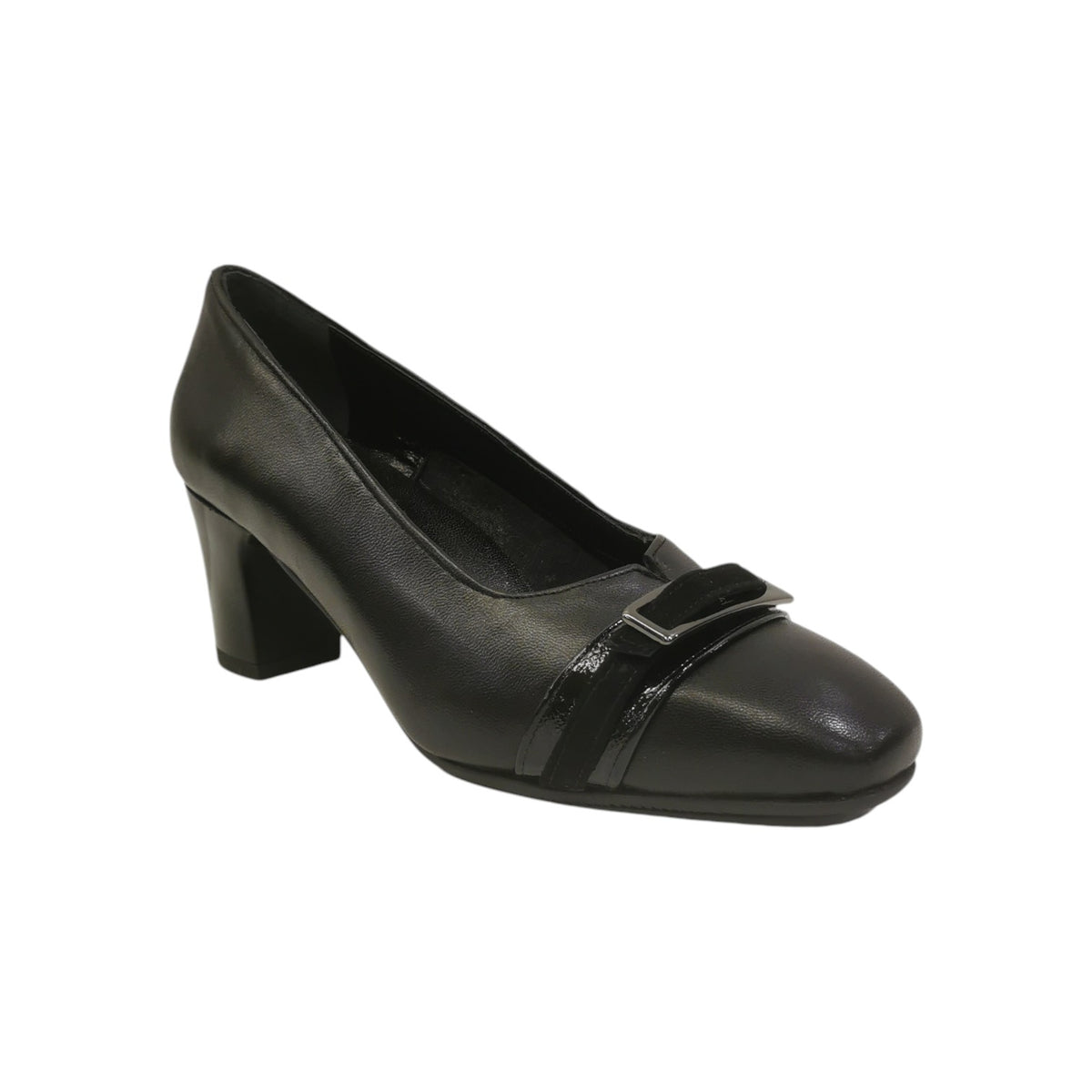 Il Dècollettè firmato Susimoda, realizzato in pelle nera offre una calzata morbida e sicura e da cinturino posizionato sulla punta, con comodo plantare in pelle. La suola con tacco garantisce stabilità, leggerezza e un ottimo supporto.