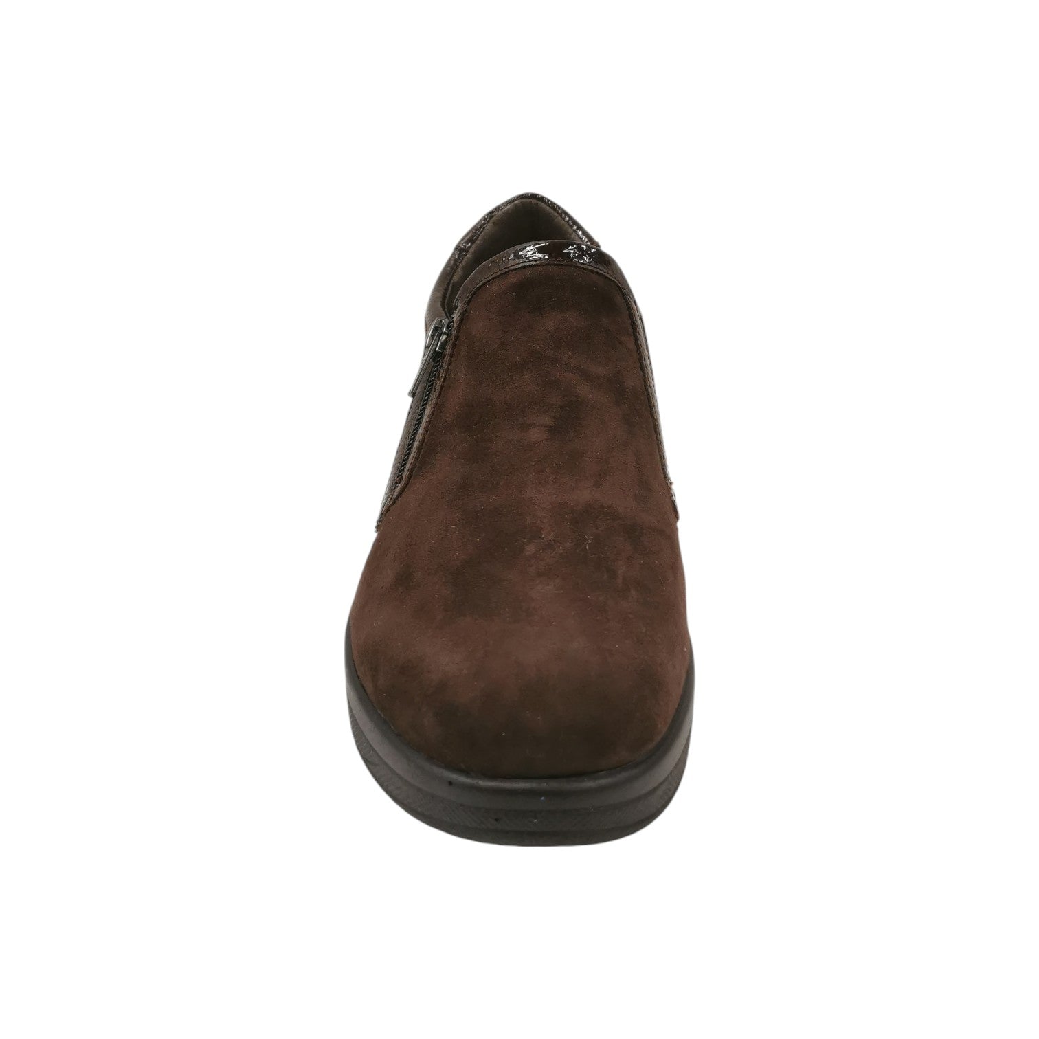 Susimoda Mocassino Accollato Donna in Camoscio con Inserti in Vernice Moro e Zip
