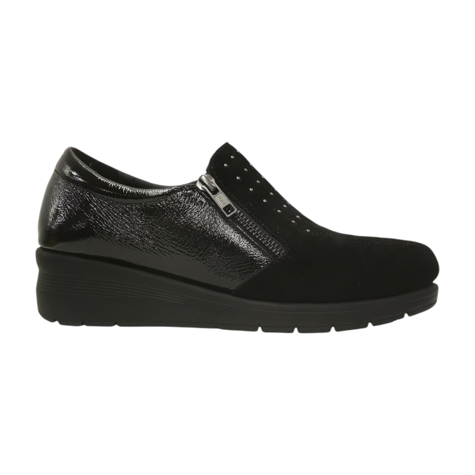 Susimoda Mocassino Donna in Camoscio e Vernice Nera con Mini Strass e Zip Laterale