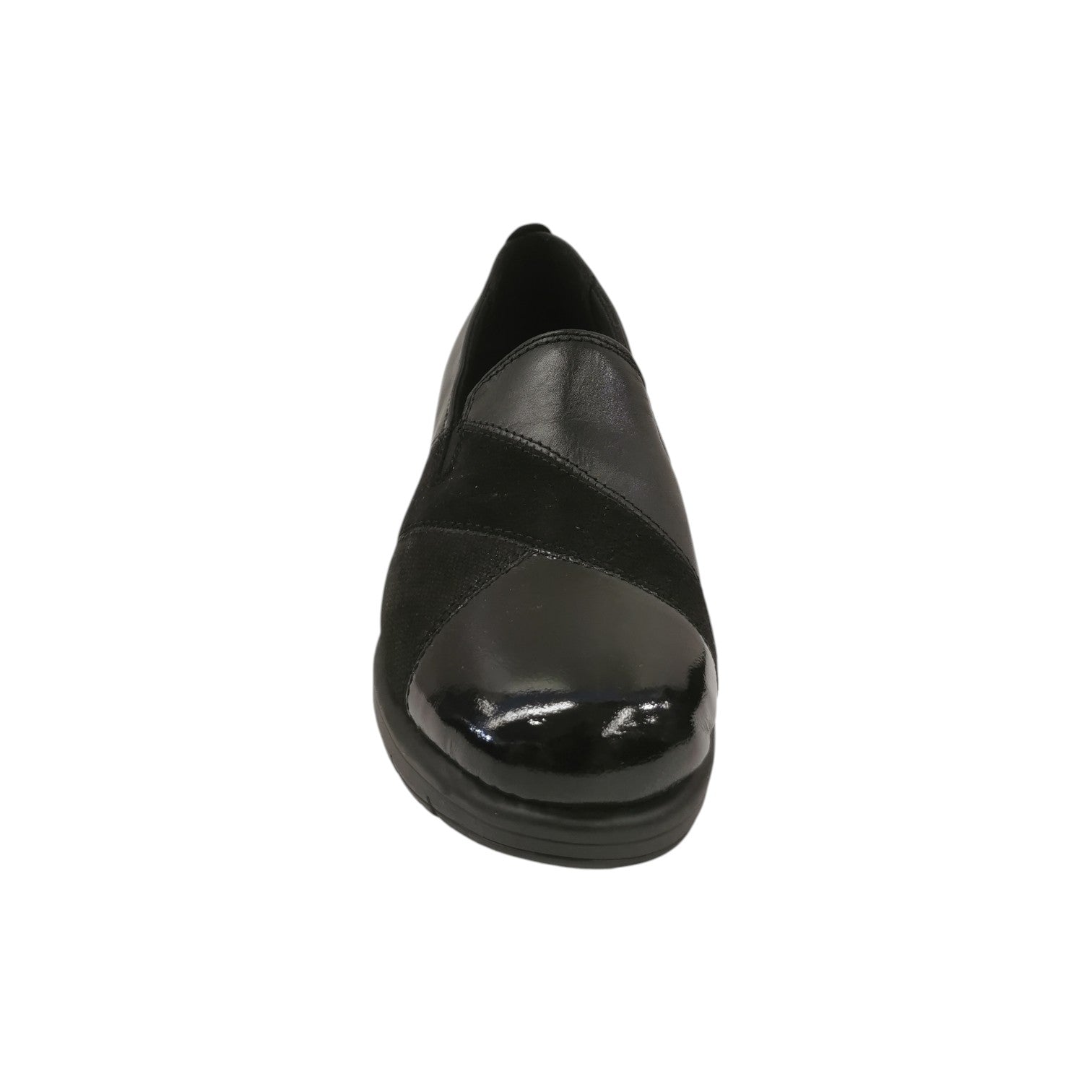 Il Mocassino firmato Susimoda, modello casual e alla moda realizzato in pelle e vernice con dettagli in camoscio presenta elastici su entrambi i lati davanti, la fodera in tessuto è imbottita e il plantare in pelle offre comfort.