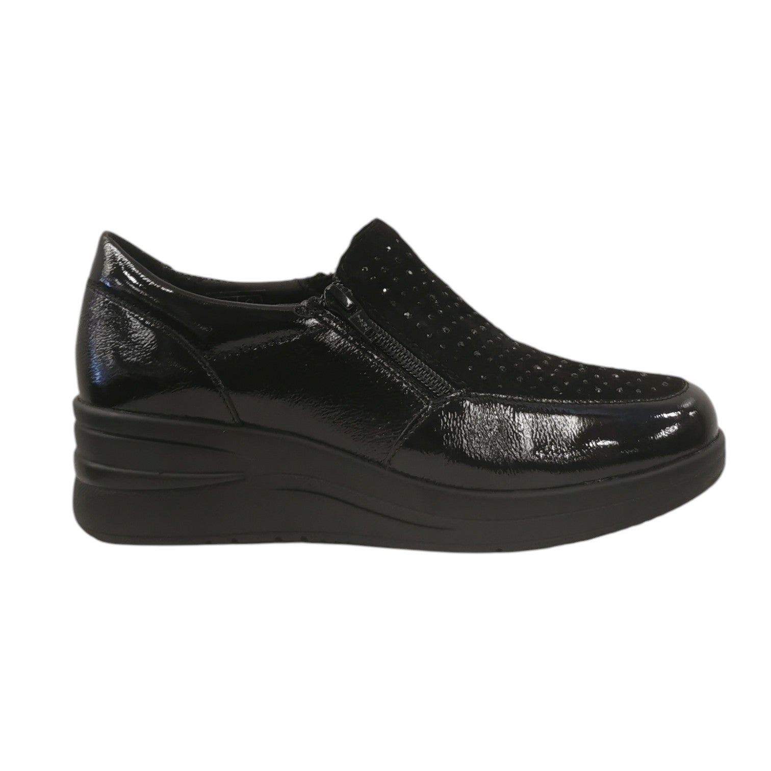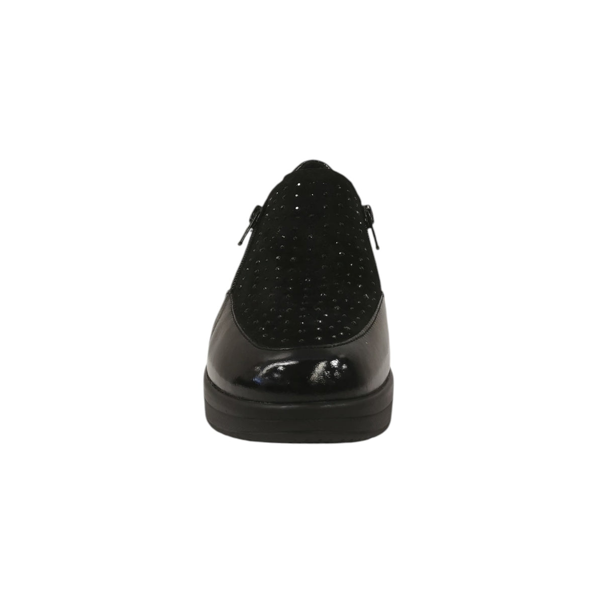 Susimoda Slip On Donna in Camoscio e Vernice Nera con Strass e Doppia Zip