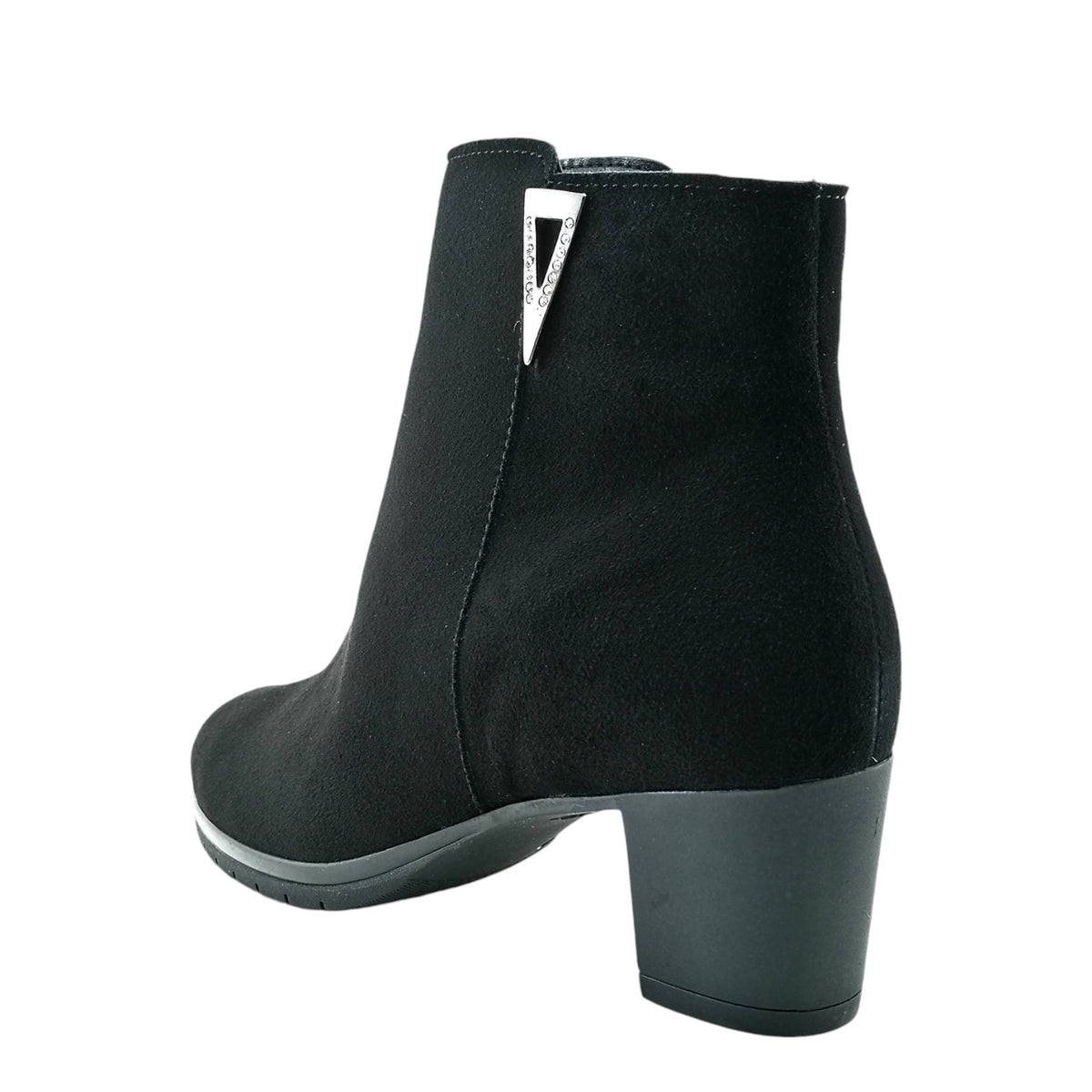 Il Tronchetto firmato Susimoda, realizzato in camoscio dal design raffinato è caratterizzato da accessorio metal/strass, con fodera e sottopiede in pelle, modello immancabile in un guardaroba femminile. Calzata comoda su tacco a blocco di 4cm e suola in gomma leggera e antiscivolo.