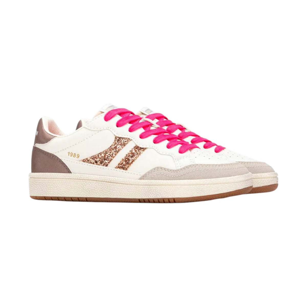 Teddy Smith Sneakers Donna Nudo con Strass Oro e Lacci Fucsia