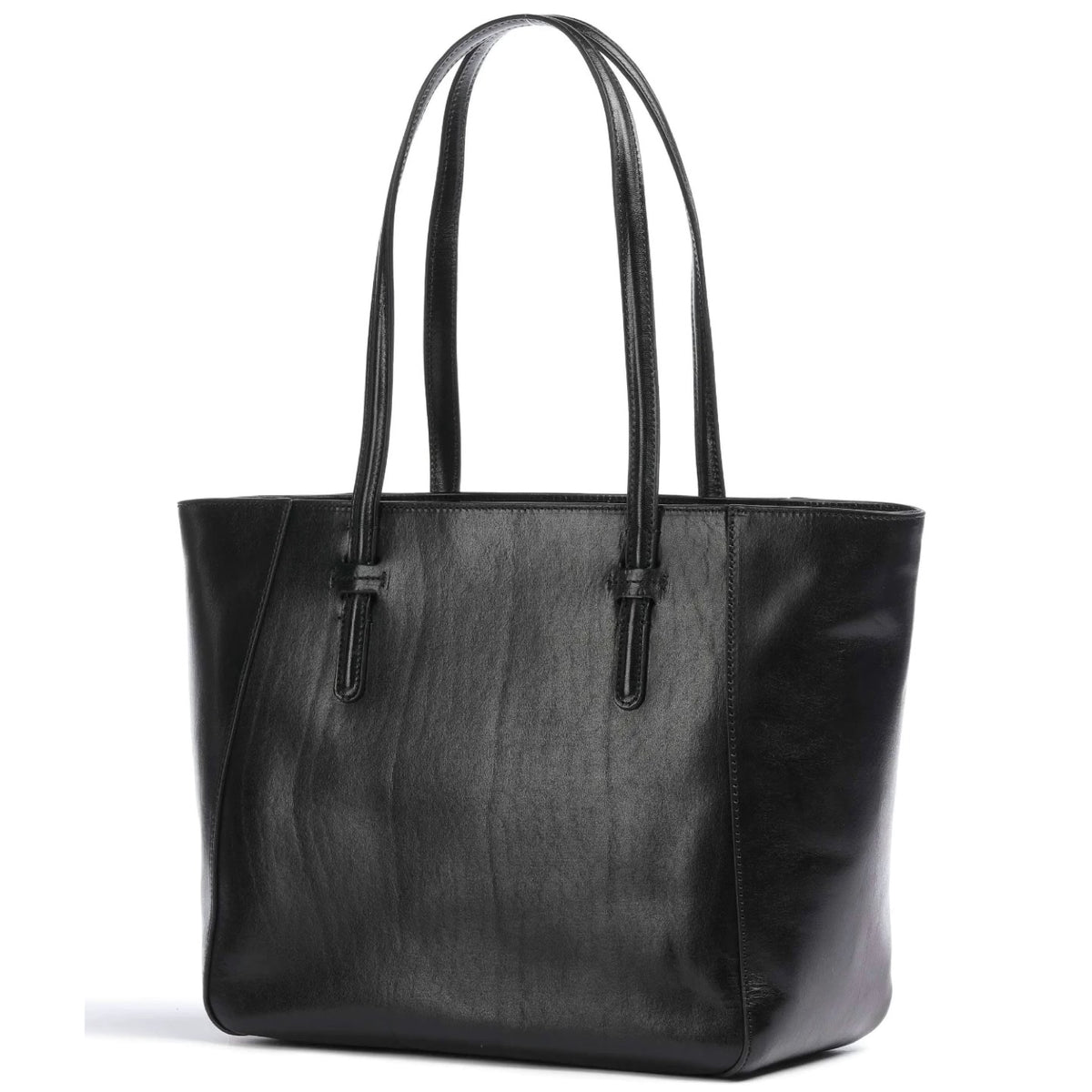 La Shopping Bag firmata The Bridge, ideale per l'uso di tutti i giorni realizzata in vera pelle presenta l'interno foderato in tessuto, tre taschini interni di cui uno con zip.