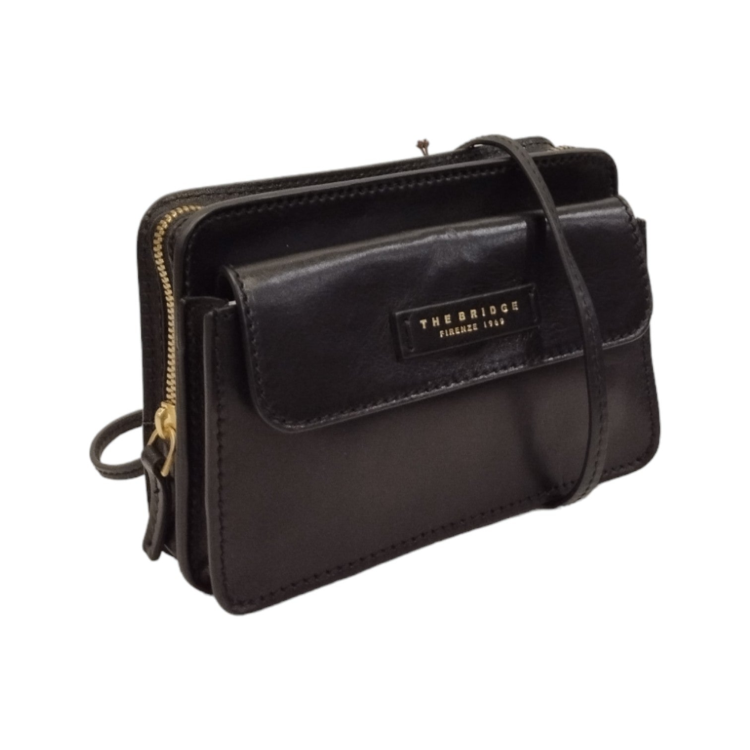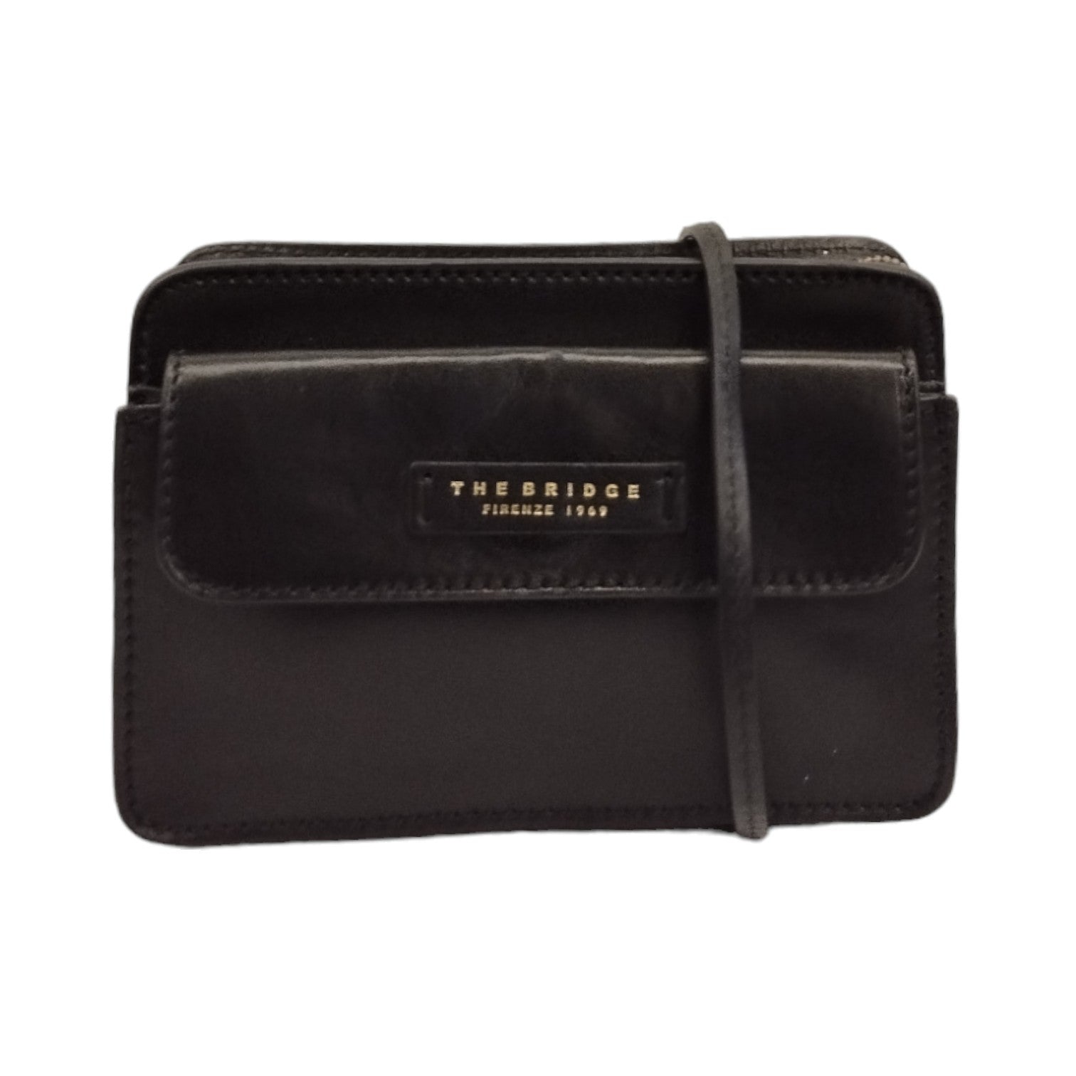 The Bridge Tracolla Nera con Tasca Frontale in Pelle