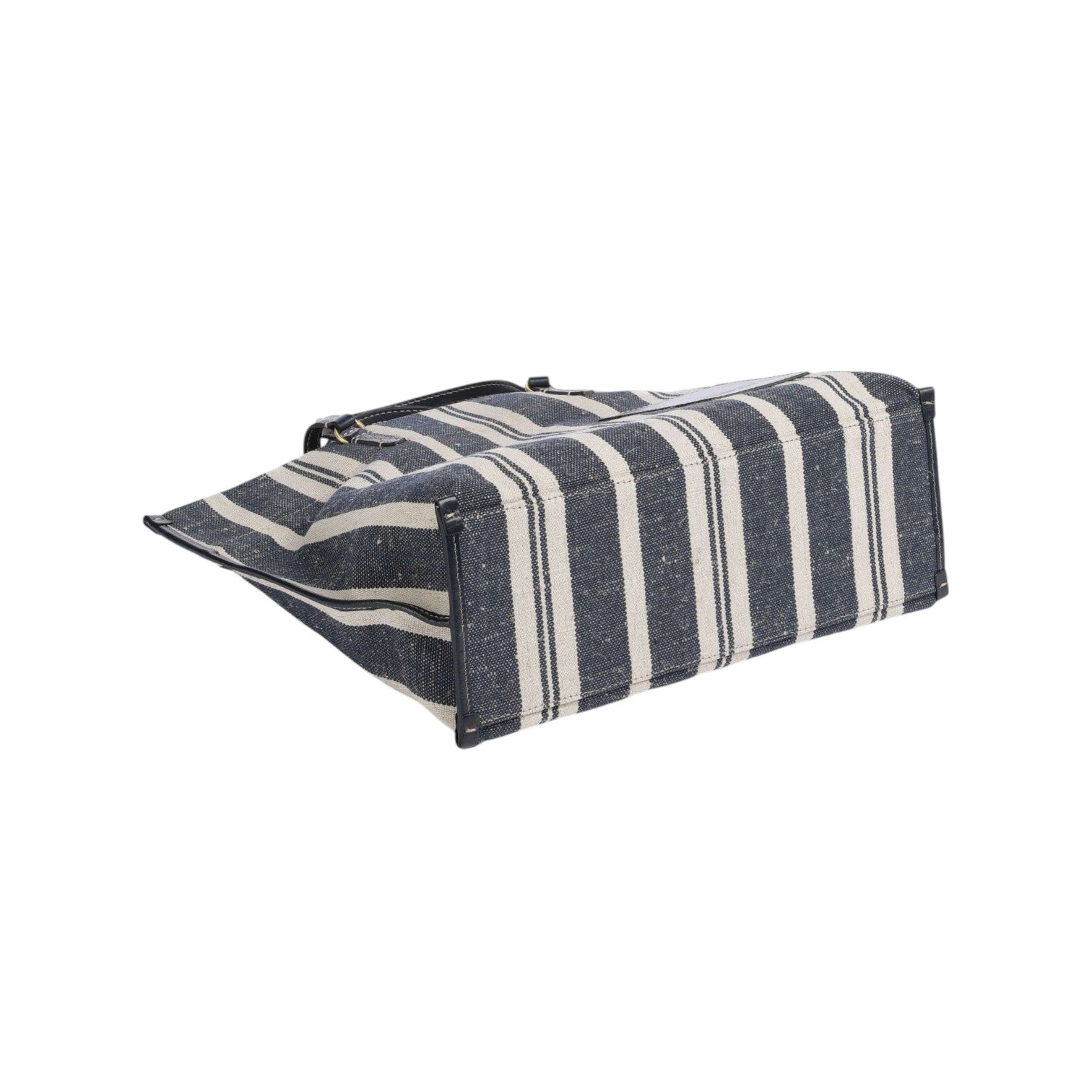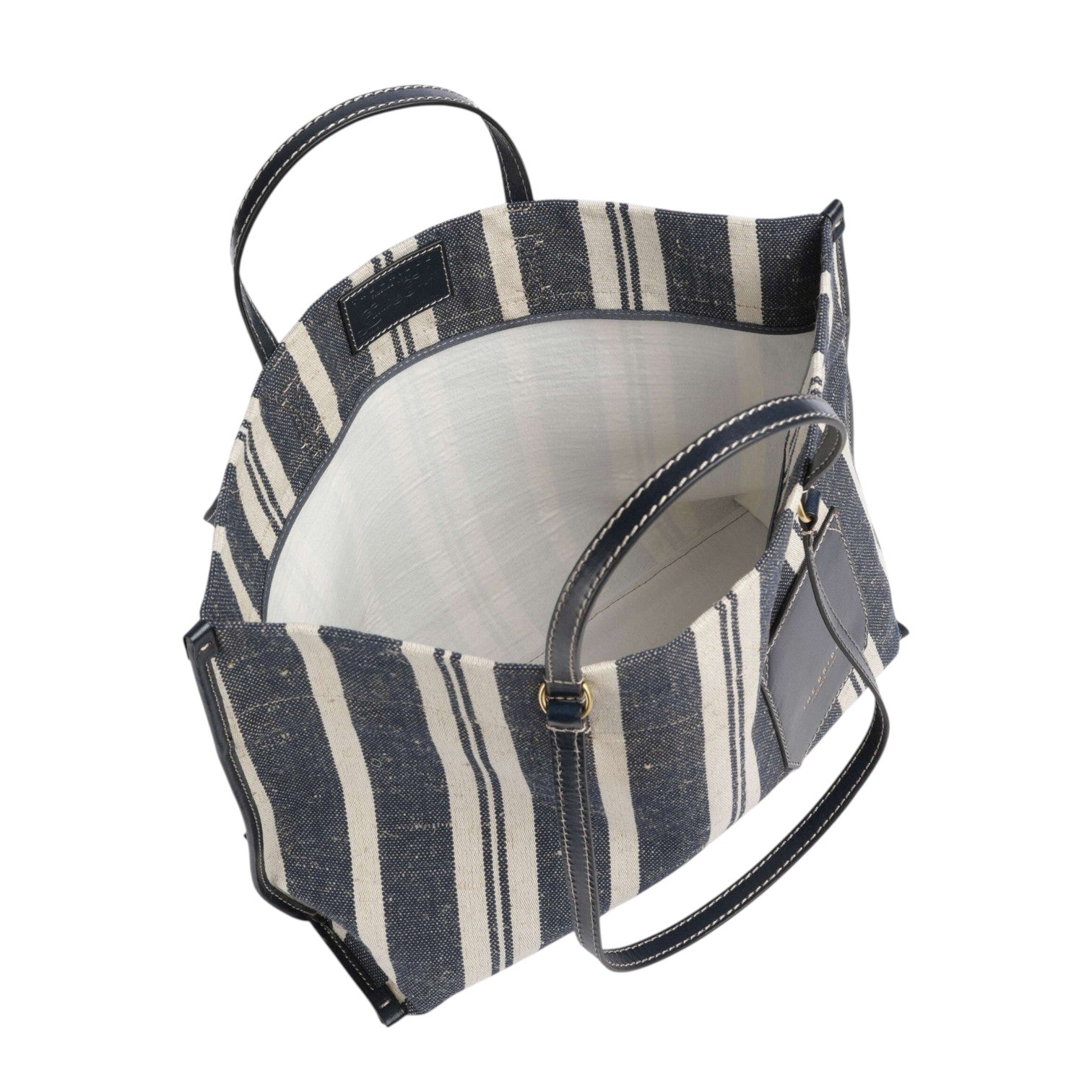 La Borsa a spalla firmata The Bridge, realizzato in tessuto qui proposta nella variante blu naturale è caratterizzata da una trama a righe e da manici rivestiti in pelle, l'interno è foderato in tessuto.