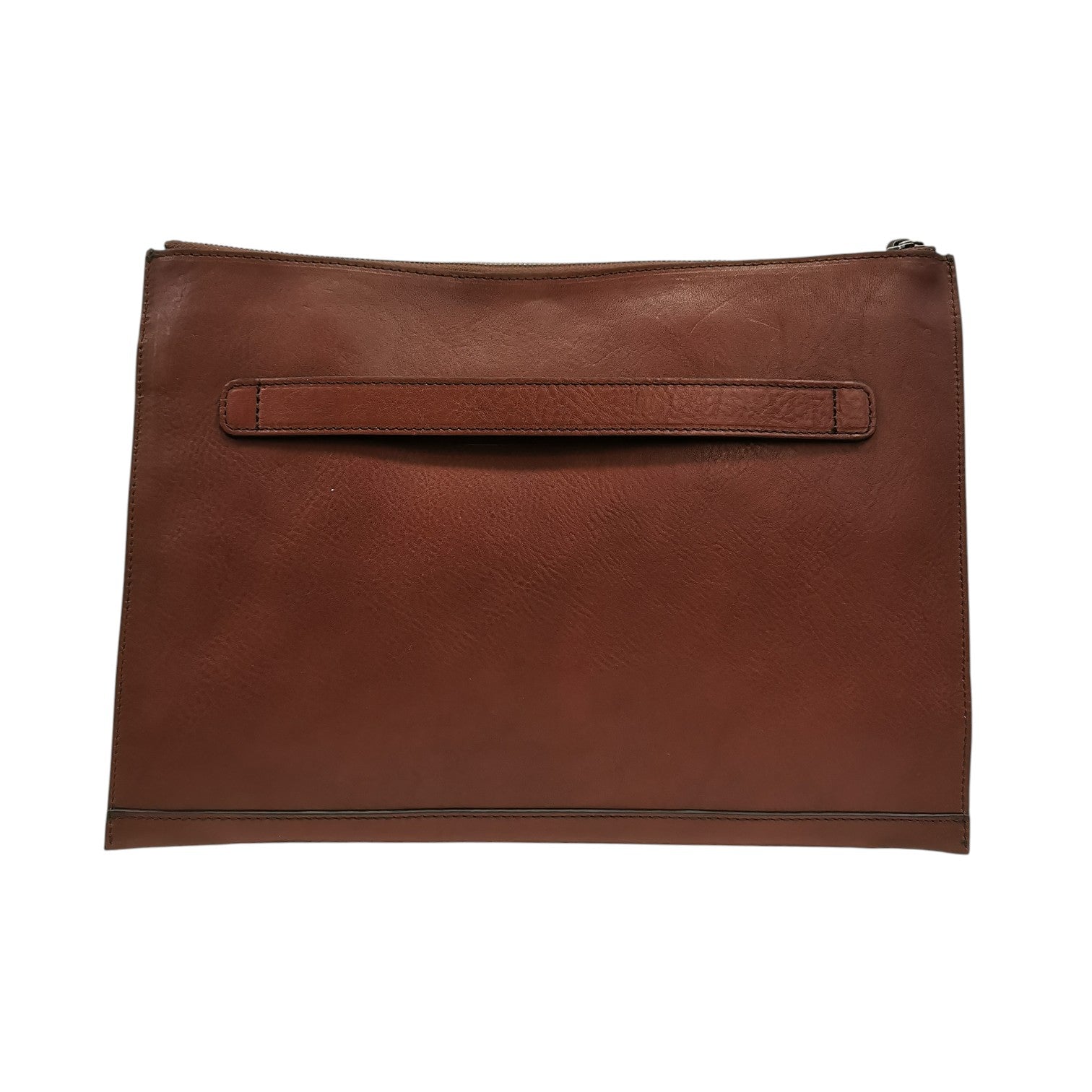 Il Portacarte firmato The Bridge, dalla forma rettangolare realizzato in vera pelle è caratterizzata da chiusura a zip e da interno in pelle sfoderata presenta un taschino aperto e un manico sul retro per prenderla a mano.