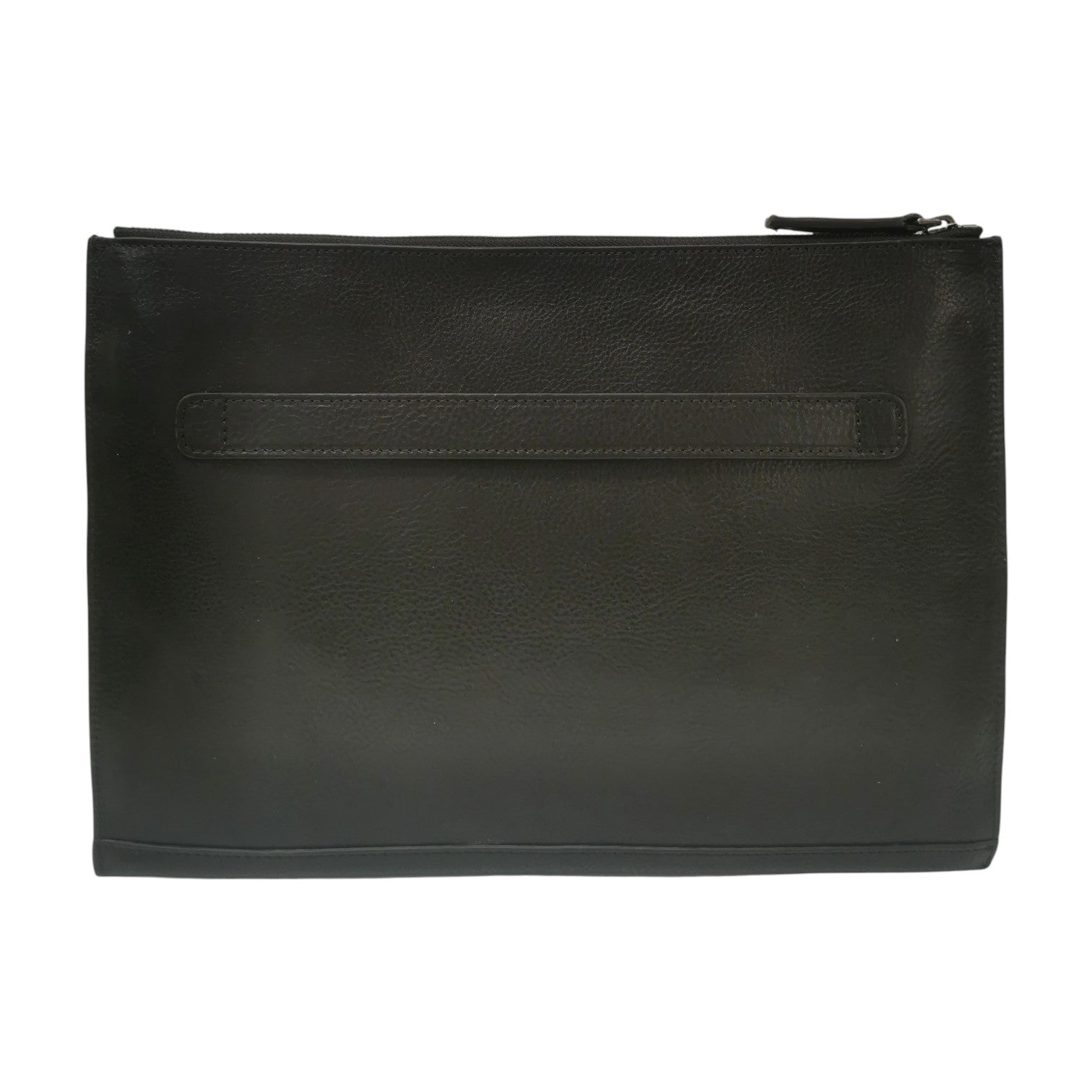 Il Portacarte firmato The Bridge, dalla forma rettangolare realizzato in vera pelle è caratterizzata da chiusura a zip e da interno in pelle sfoderata presenta un taschino aperto e un manico sul retro per prenderla a mano.