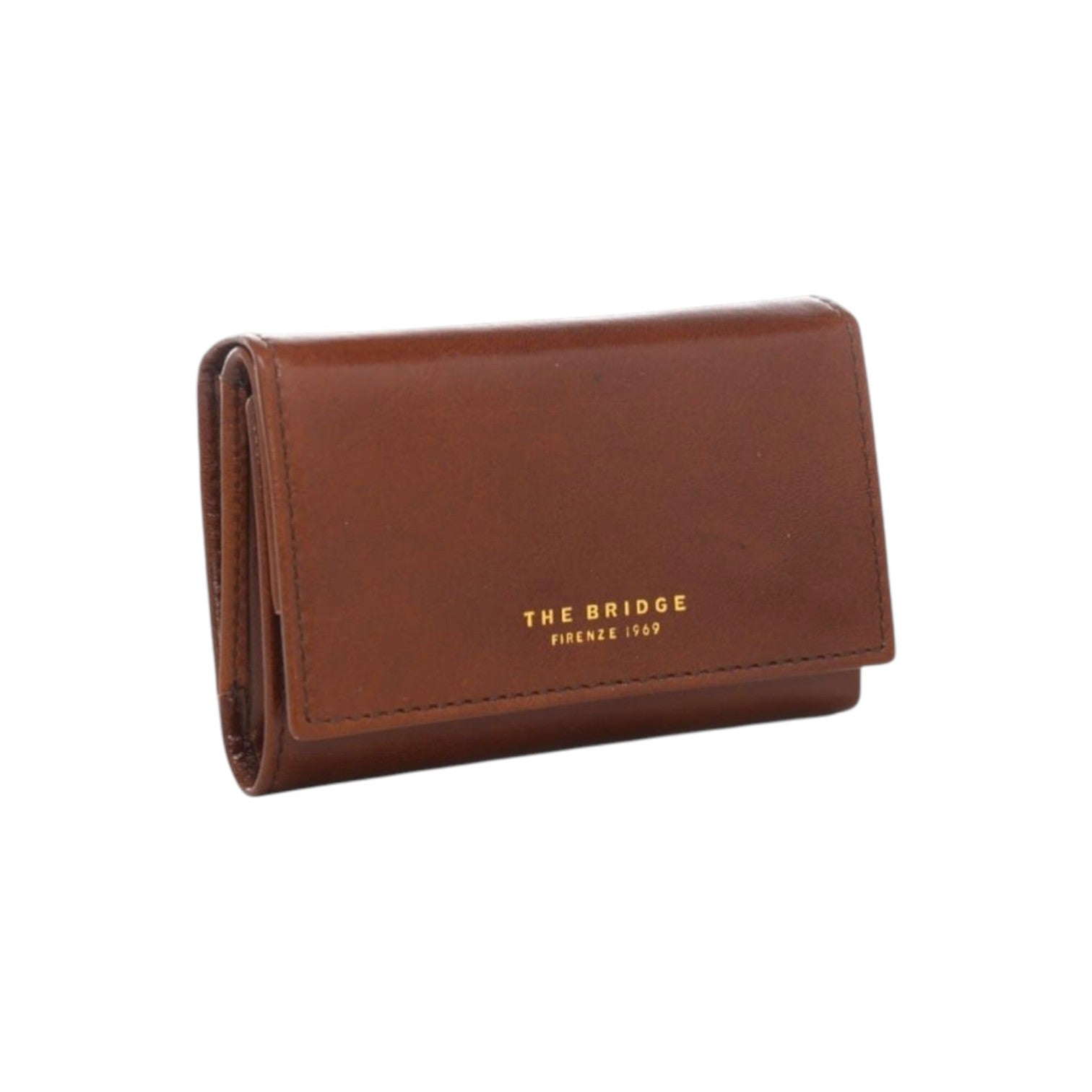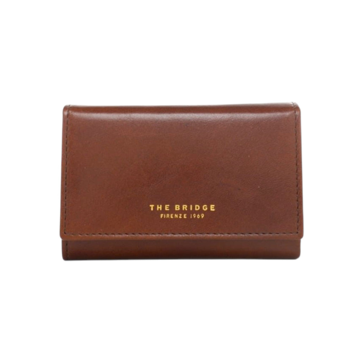 Il Portafoglio firmato The Bridge, realizzato in pelle qui proposto nella variante cuoio con logo lettering stampato a fuoco sul davanti è caratterizzato da chiusura con bottone magnetico e da 3 slots portatessere, di cui dispone di scomparto per le banconote.