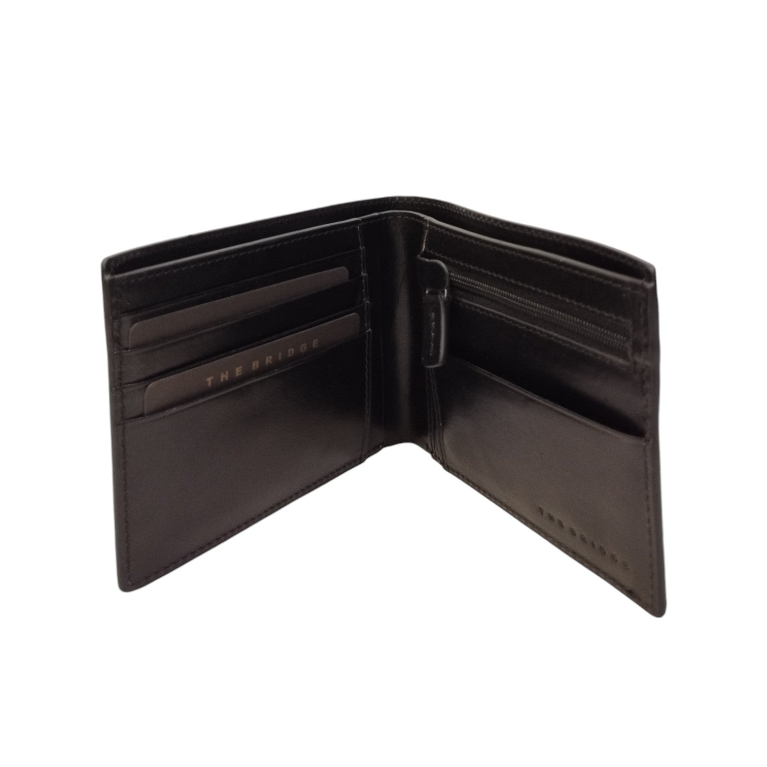 Il Portafoglio firmato The Bridge, realizzato in vera pelle è caratterizzato da diversi scomparti per tessere, carte di credito e documenti. Doppio scomparto banconote ed uno per monete chiuso con clip.
